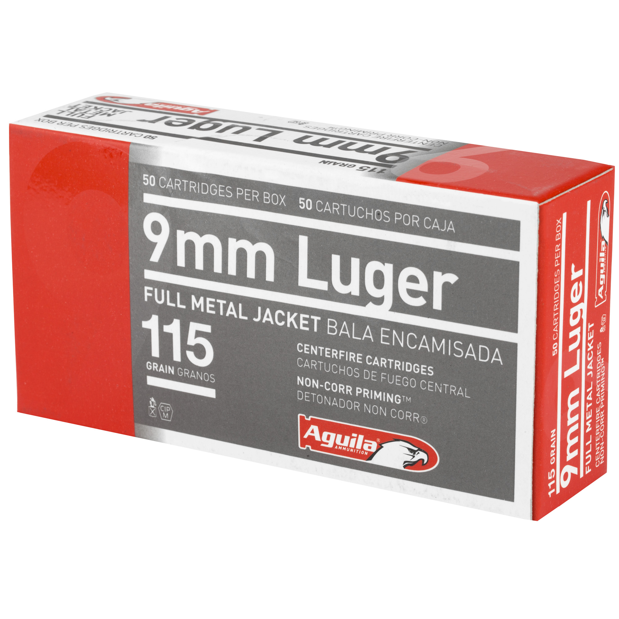 ATTRIBUTES: 9MM, 115Gr, Aguila Ammunition, Pistol, Full Metal Jacket, 50, 1000
