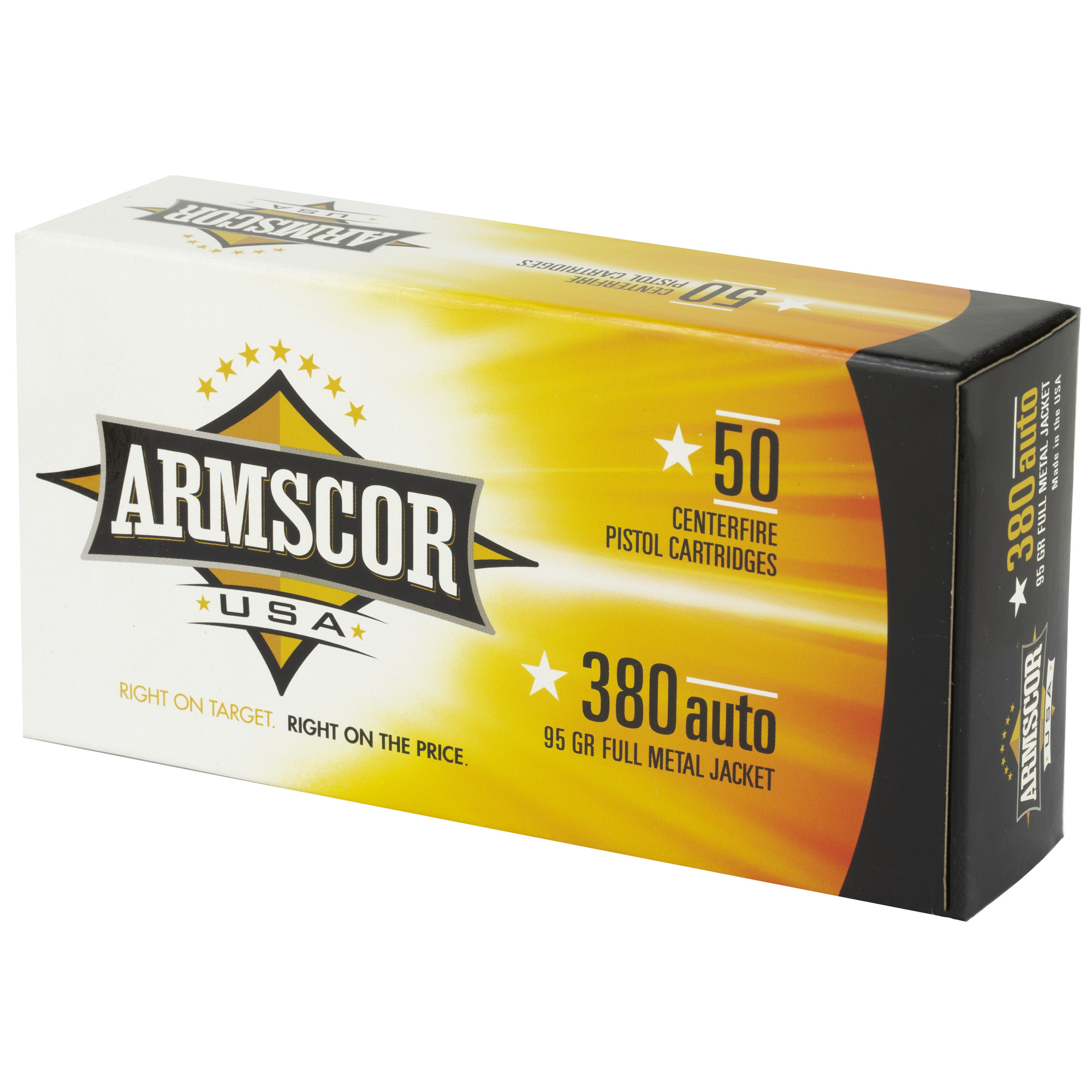 Armscor 380 ACP 95-Grain FMJ Ammunition – 50 Rounds per Box, 1000 per Case