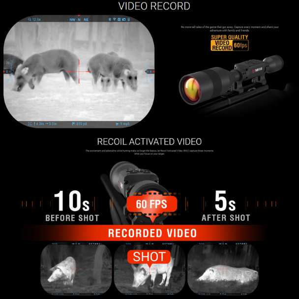 Capture every moment with onboard 4K video recording, including Recoil Activated Video (RAV) which automatically saves footage before and after each shot. All recordings are stored internally and can be reviewed later—perfect for training, documentation, or sharing footage post-hunt.