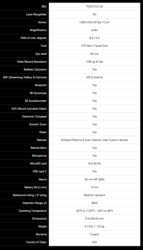 The ATN Thor 5 XD 1280 4-40x Thermal Scope is a high-performance Gen V thermal optic with a 1280×1024 resolution sensor, advanced 4-40x digital zoom, built-in smart features, and rugged construction—ideal for professional hunters, night operations, and tactical engagements.