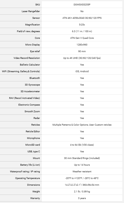 ATN X-Sight 5 Day Night Hunting Rifle Scope (5‑25×)