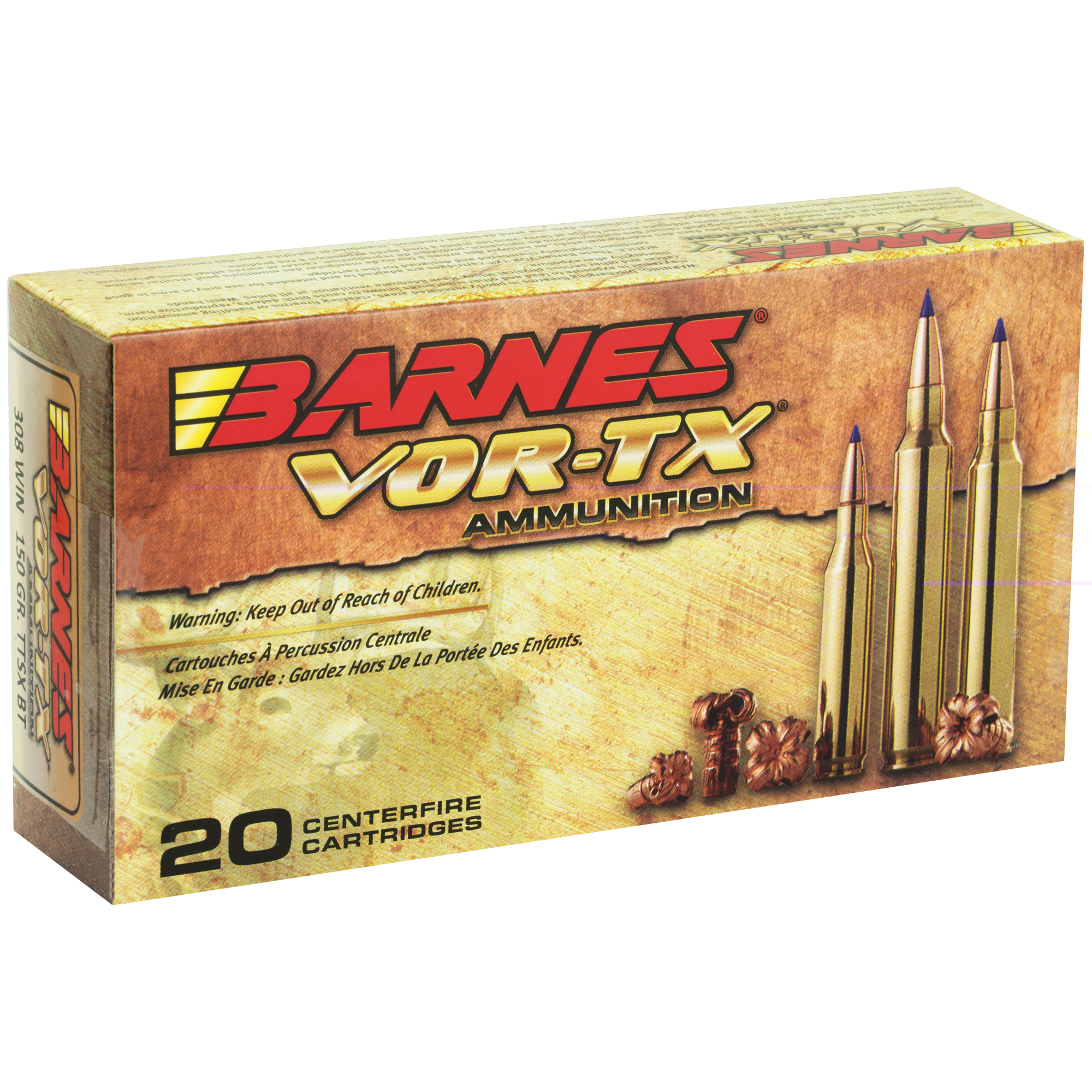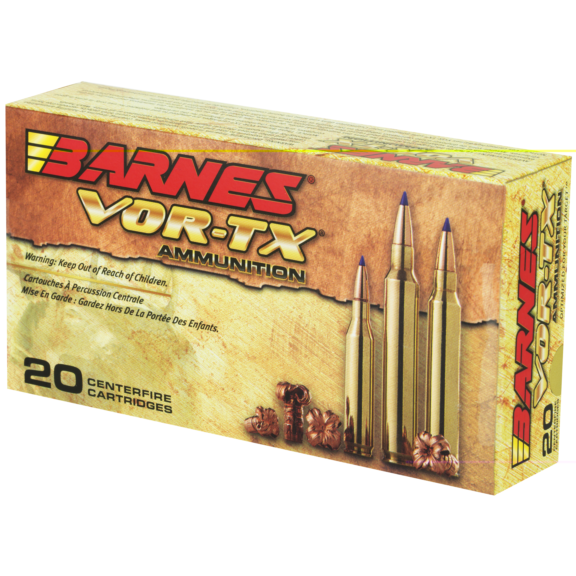 Barnes(R) VOR-TX(R) is precision ammunition loaded with the deadliest bullets on the planet. Barnes, the leader in bullet innovation offers hunters the ultimate in accuracy, terminal performance and handloaded precision in a factory loaded round. Offering double-diameter expansion, maximum weight retention and excellent accuracy, the TSX(R), Tipped TSX(TM), and TSX FN(TM) provide devastating energy transfer. Multiple grooves in the bullets shank reduce pressure and improve accuracy. Bullets open instantly on contact – no other bullet expands as quickly. Nose peels back into four sharp-edged copper petals.