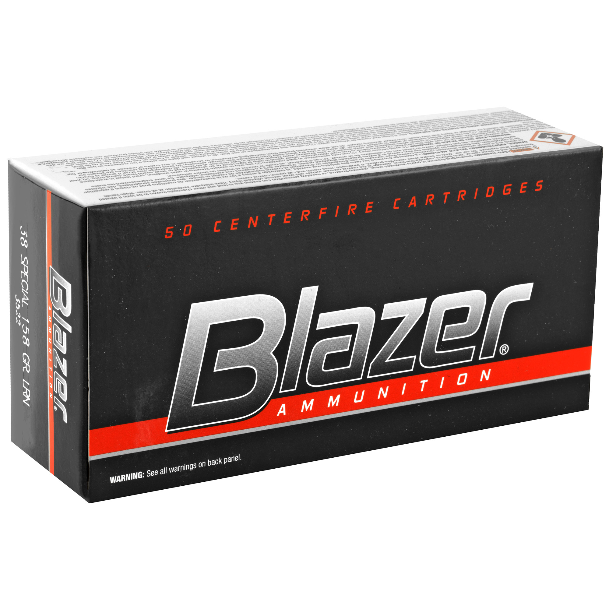ATTRIBUTES: 38 Special, 158Gr, Blazer Ammunition, Blazer, Lead Round Nose, 50, 1000