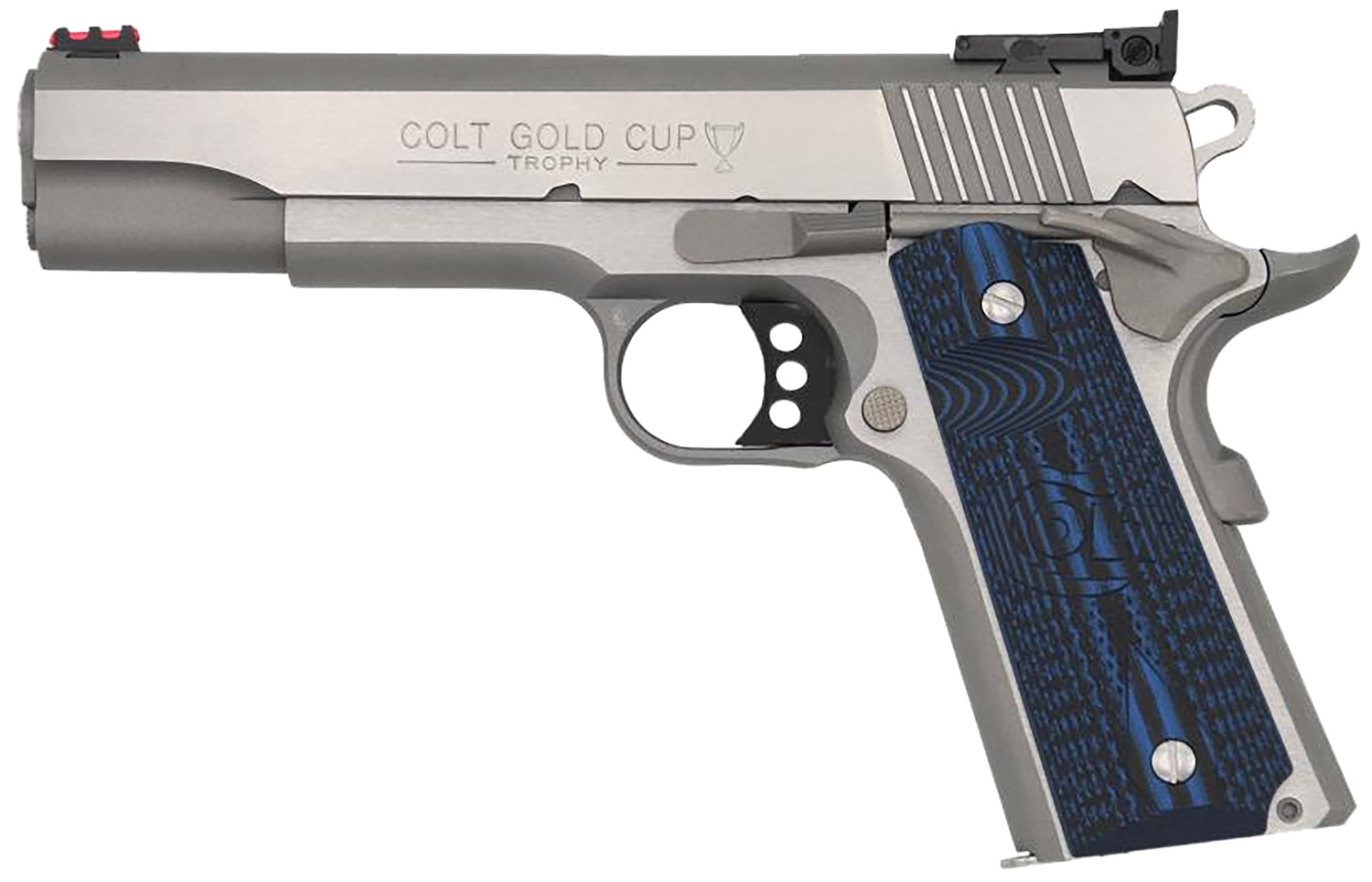 The Colt Gold Cup Lite Model O5073GCL is a precision-engineered semi-automatic pistol chambered in .38 Super, designed for both competitive shooting and reliable personal defense. Featuring a sleek brushed stainless steel finish, this firearm combines durability with a refined aesthetic. Its lightweight design, weighing approximately 38 ounces, ensures comfortable handling during extended shooting sessions. The pistol’s overall length of 8.5 inches makes it suitable for a variety of shooting environments, offering a balanced combination of size and performance. Equipped with a single-action mechanism, the Gold Cup Lite provides a crisp trigger pull for enhanced accuracy and control.