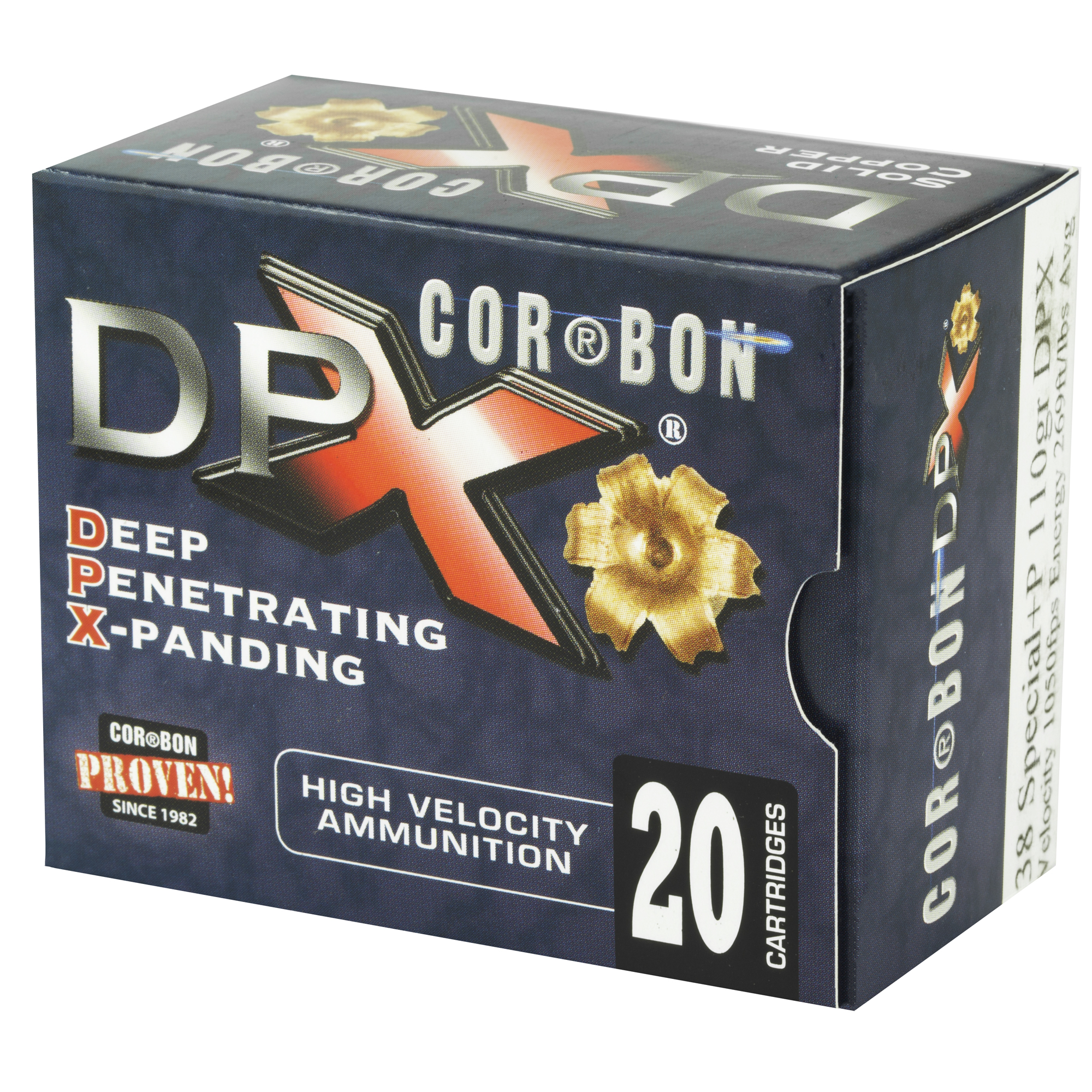ATTRIBUTES: 38 Special, 110Gr, Corbon Ammo, Deep Penetrating X bullet, XPB, 20, 500