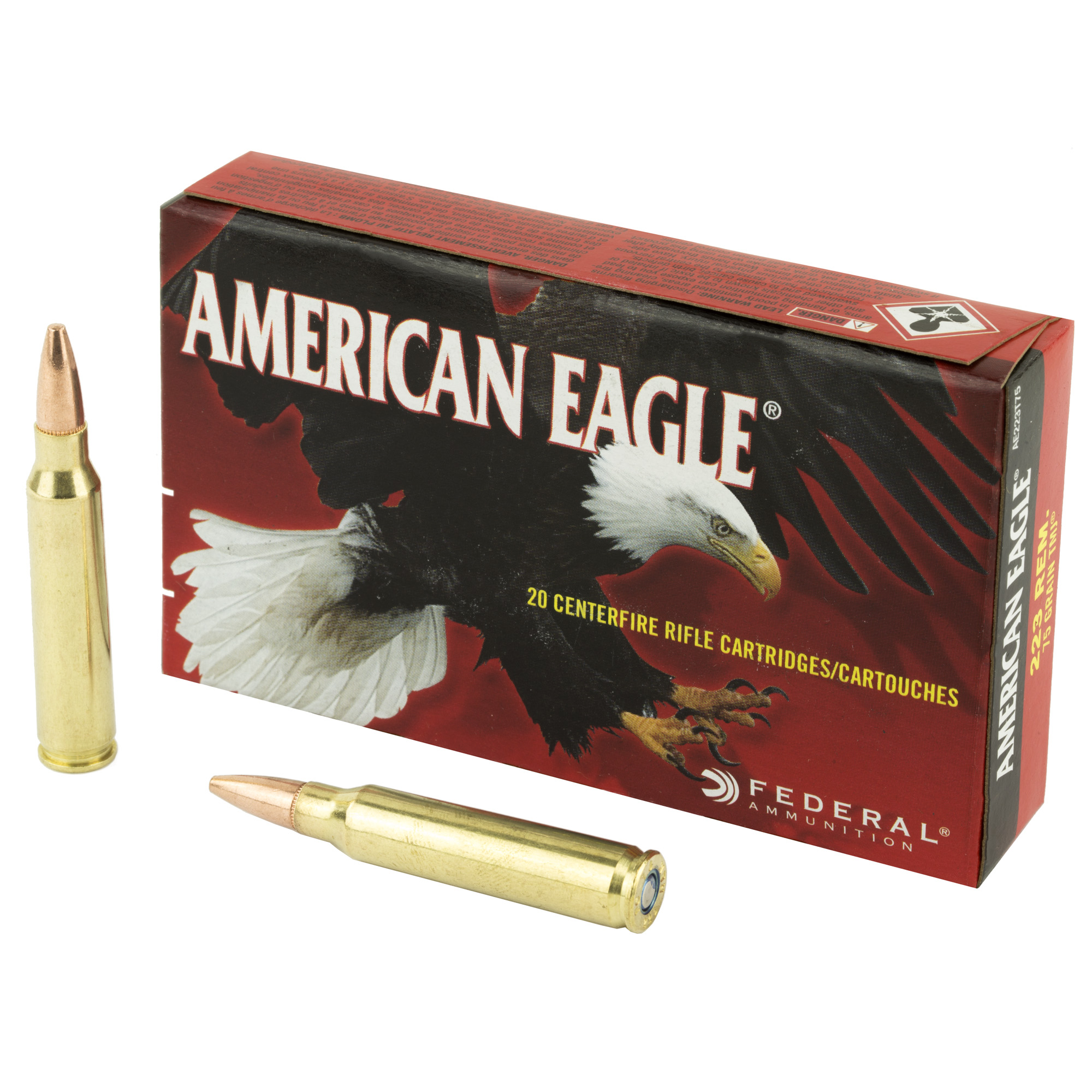 ATTRIBUTES: 223 Remington, 75Gr, Federal, American Eagle, Total Metal Jacket, 20, 500