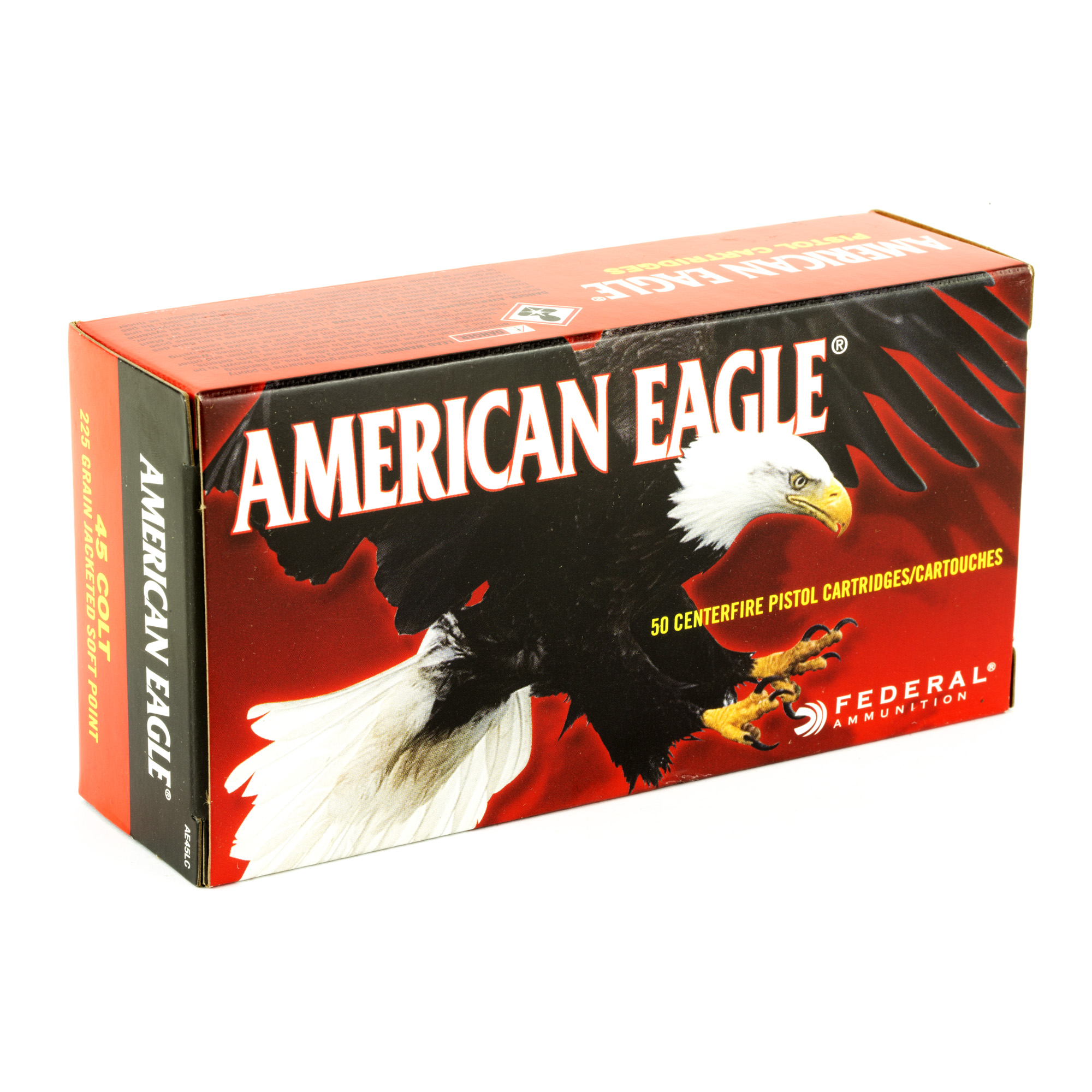 ATTRIBUTES: 45 Colt, 225Gr, Federal, American Eagle, Jacketed Soft Point, 50, 1000