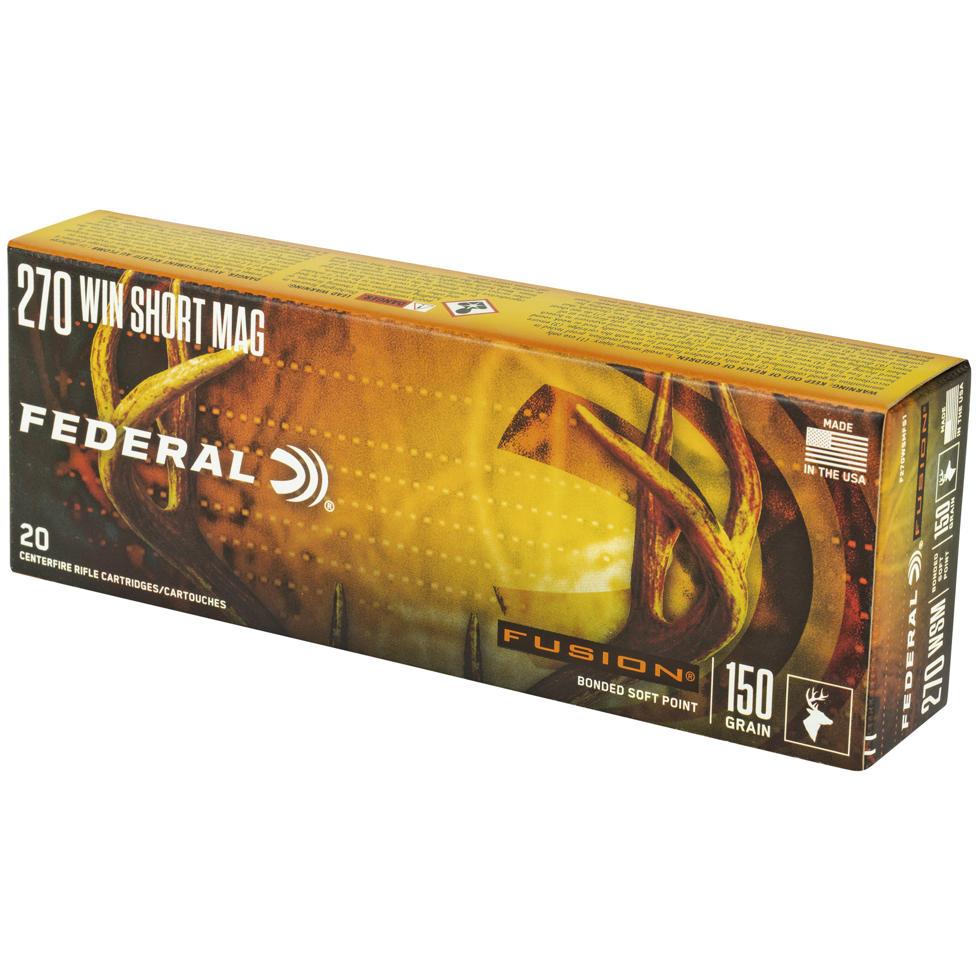 ATTRIBUTES: 270 Winchester Short Magnum, 150Gr, Federal, Fusion, Boat Tail, 20, 200