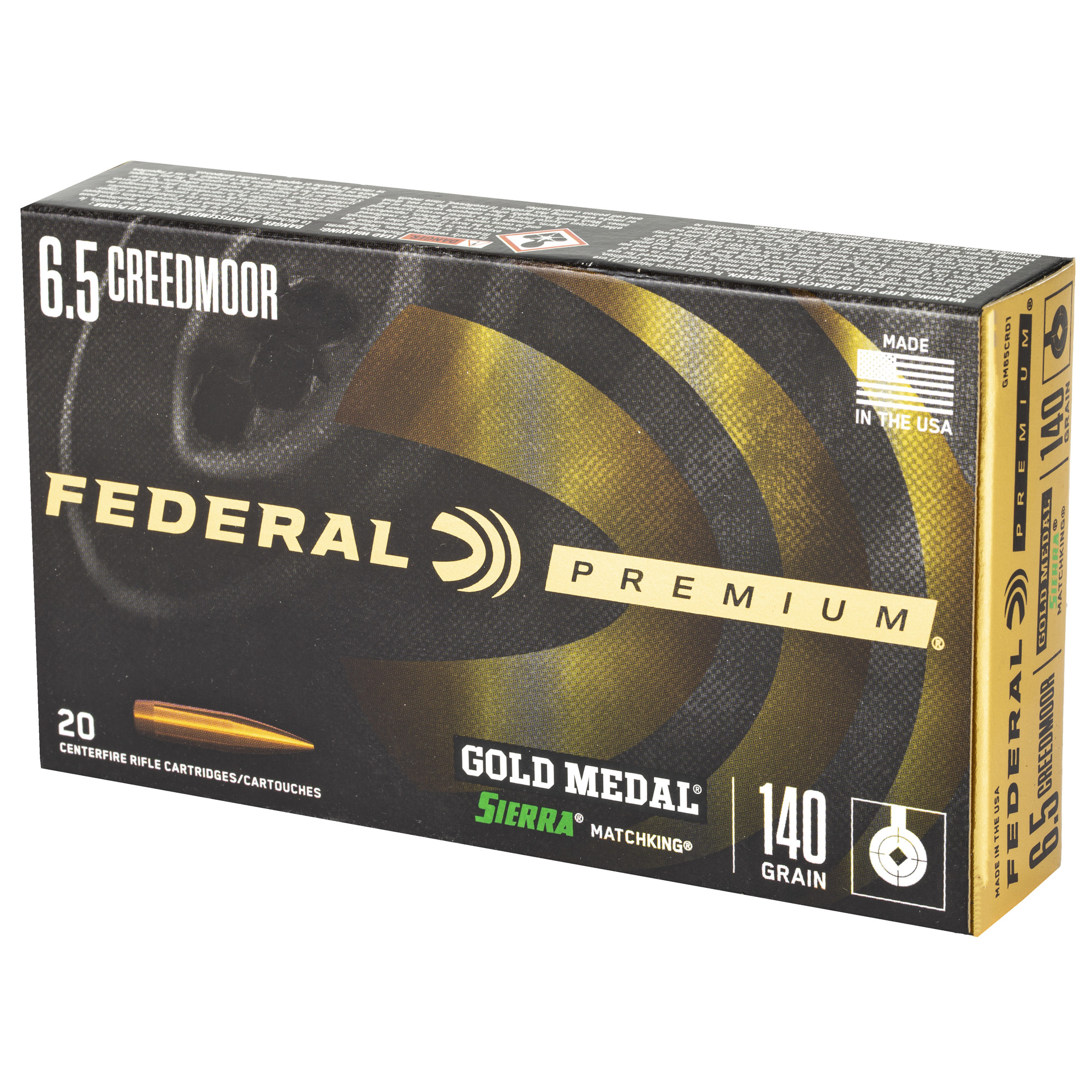 ATTRIBUTES: 6.5 Creedmoor, 140Gr, Federal, Gold Medal, Boat Tail Hollow Point, 20, 200