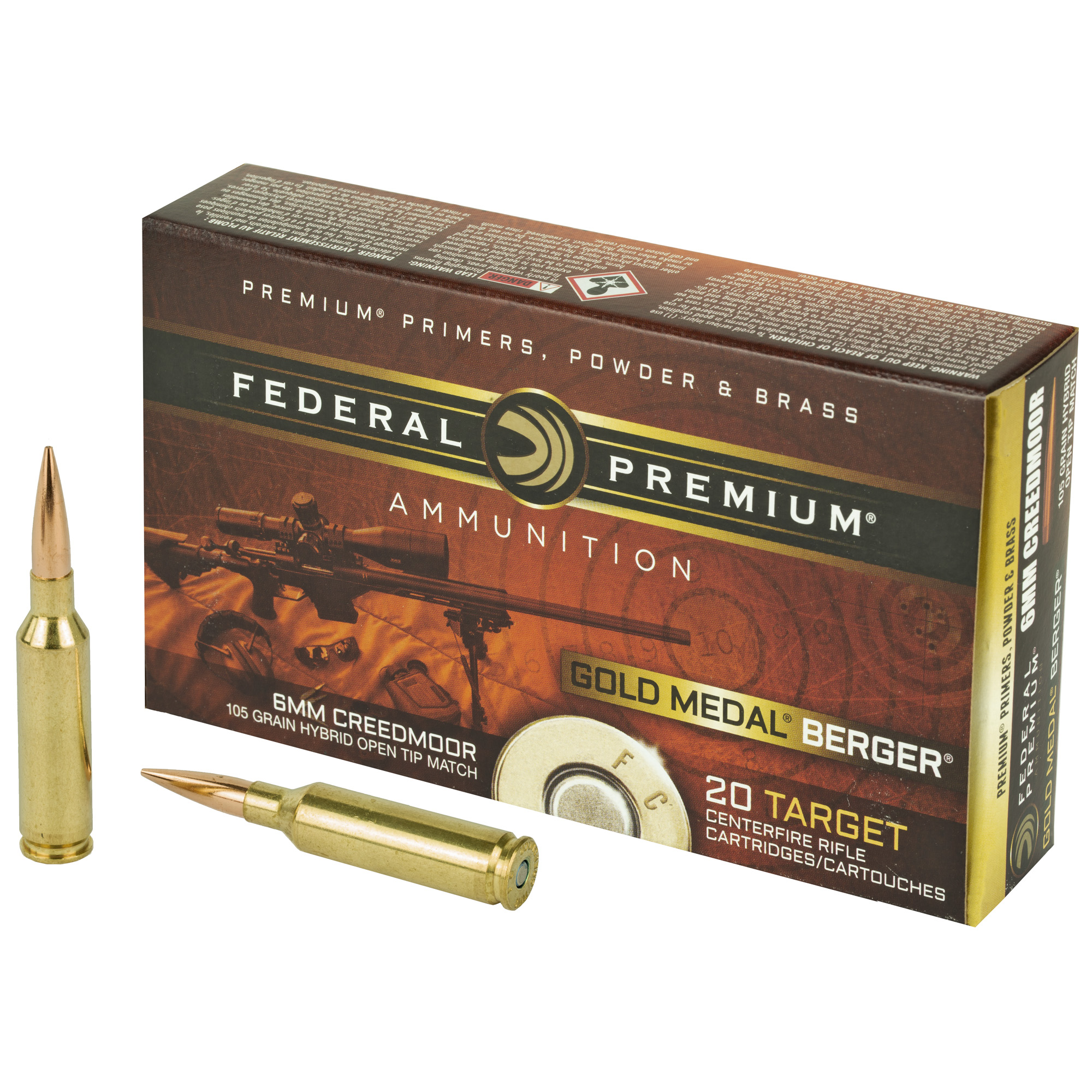 ATTRIBUTES: 6MM Creedmoor, 105Gr, Federal, Gold Medal, Boat Tail Hollow Point, 20, 200