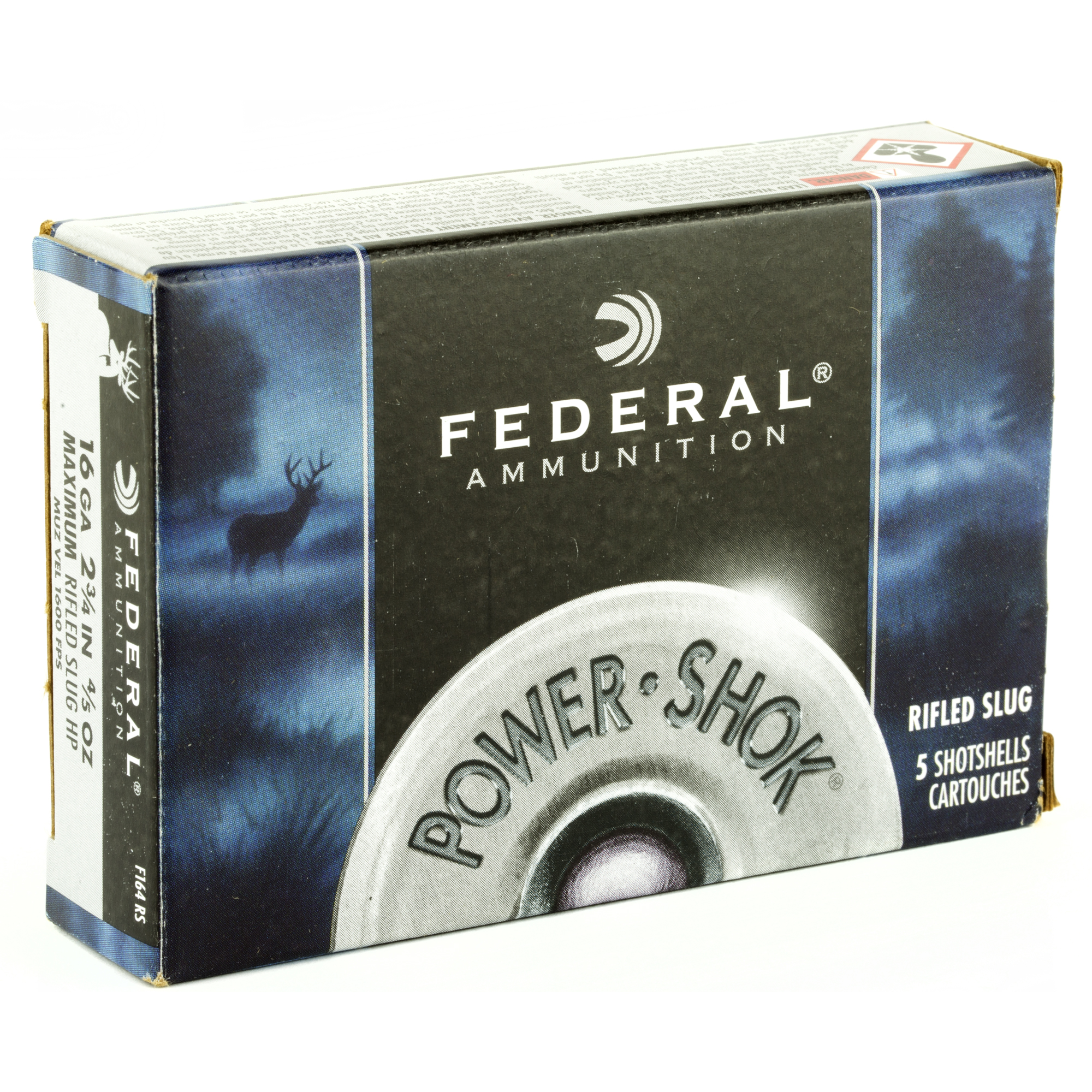 ATTRIBUTES: Max Dram, 16 Gauge 2.75, Federal, PowerShok, .80 oz, Rifled Slug, 5, 250