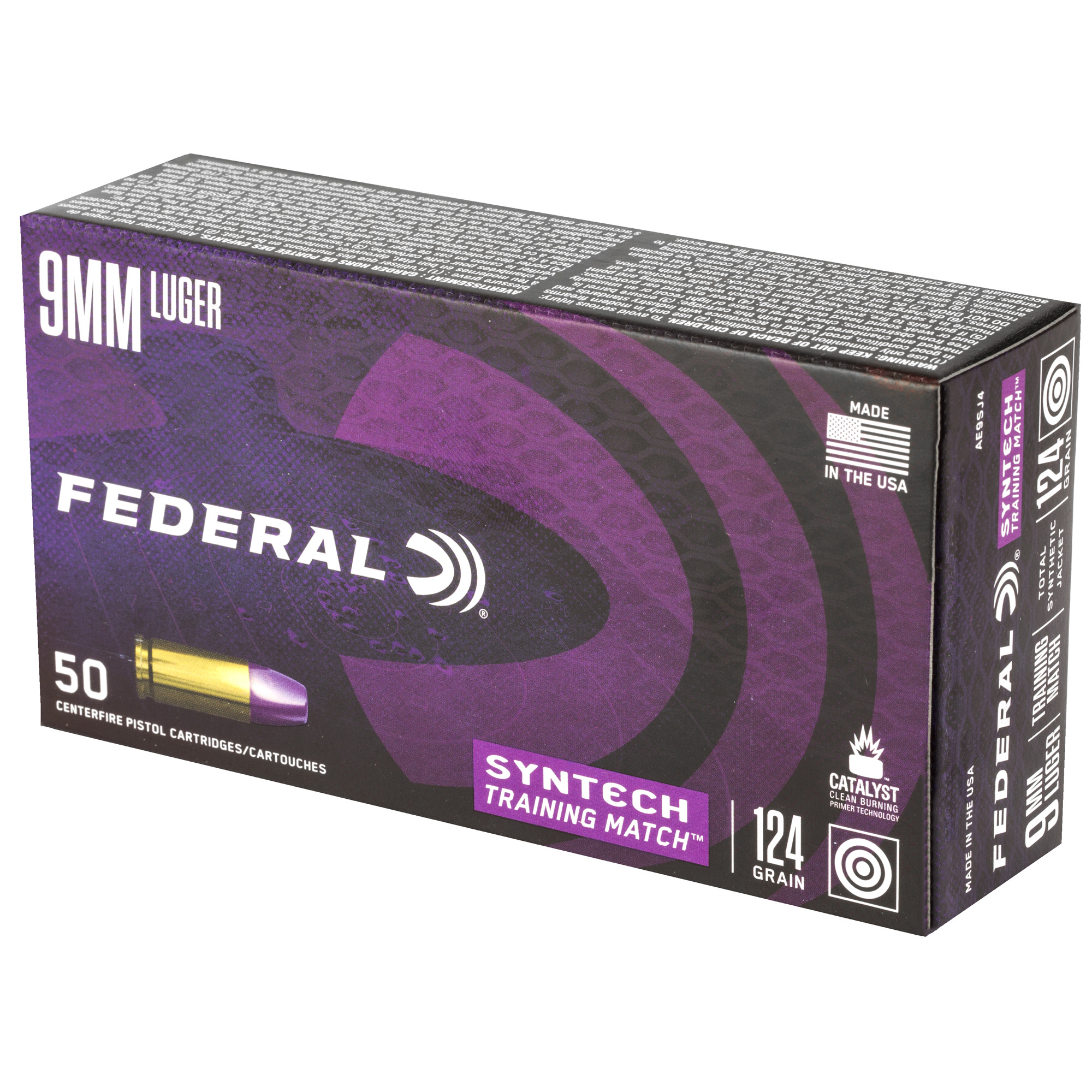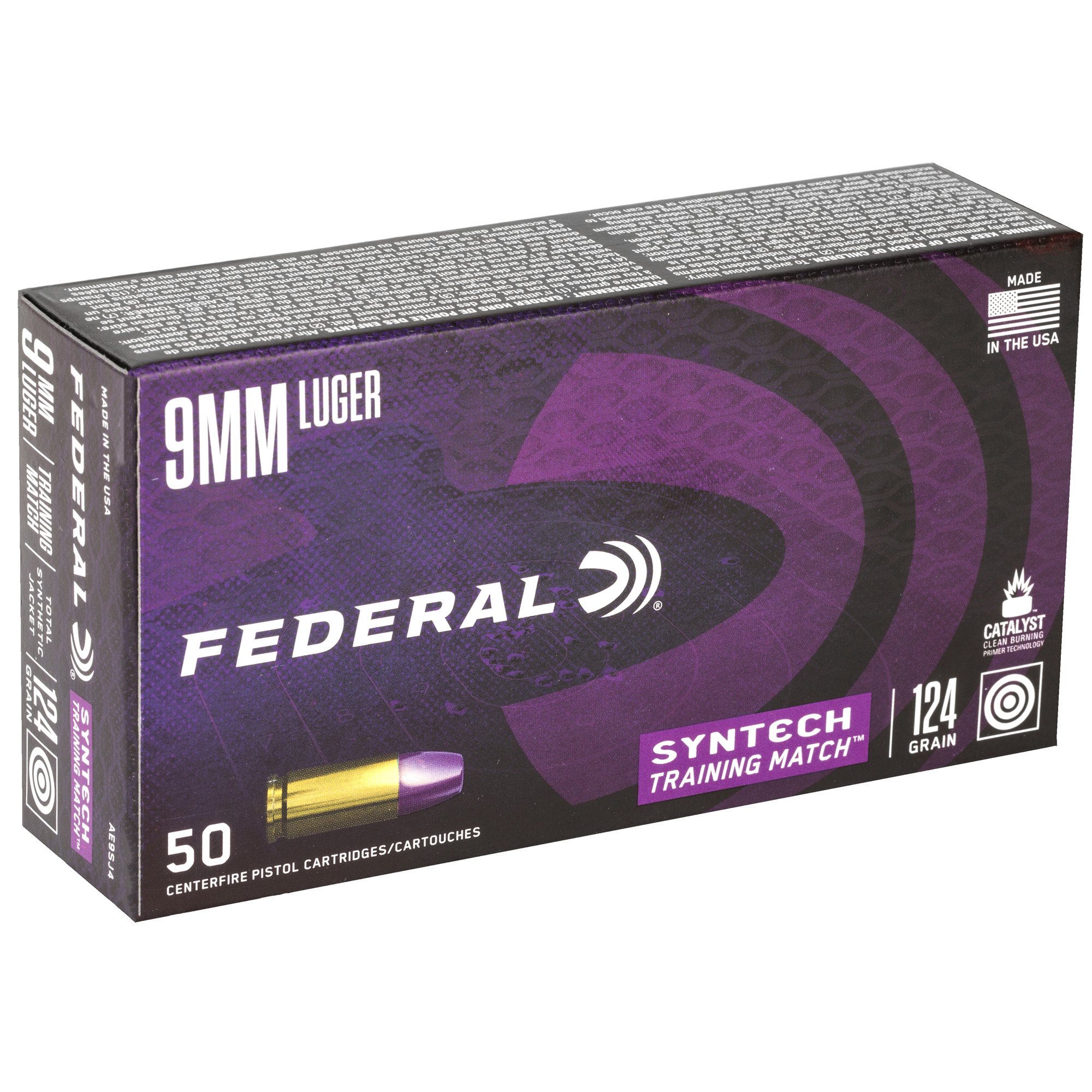ATTRIBUTES: 9MM, 124Gr, Federal, Syntech, Total Synthetic Jacket, 50, 500