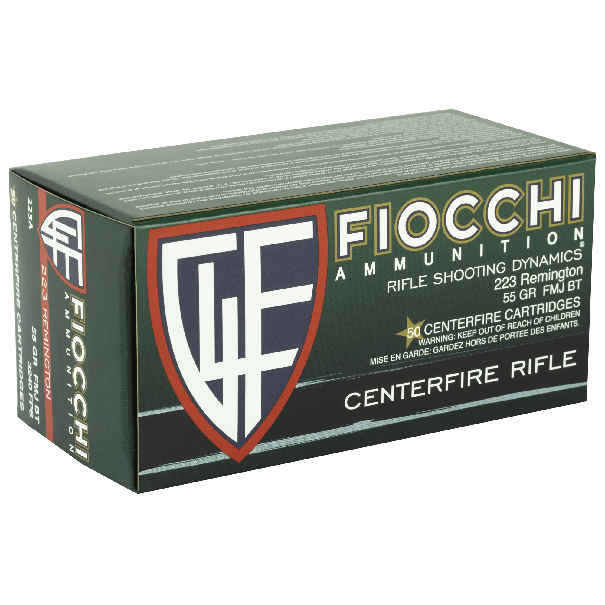 ATTRIBUTES: 223 Remington, 55Gr, Fiocchi Ammunition, Fiocchi Rifle, Full Metal Jacket Boat Tail, 50, 1000