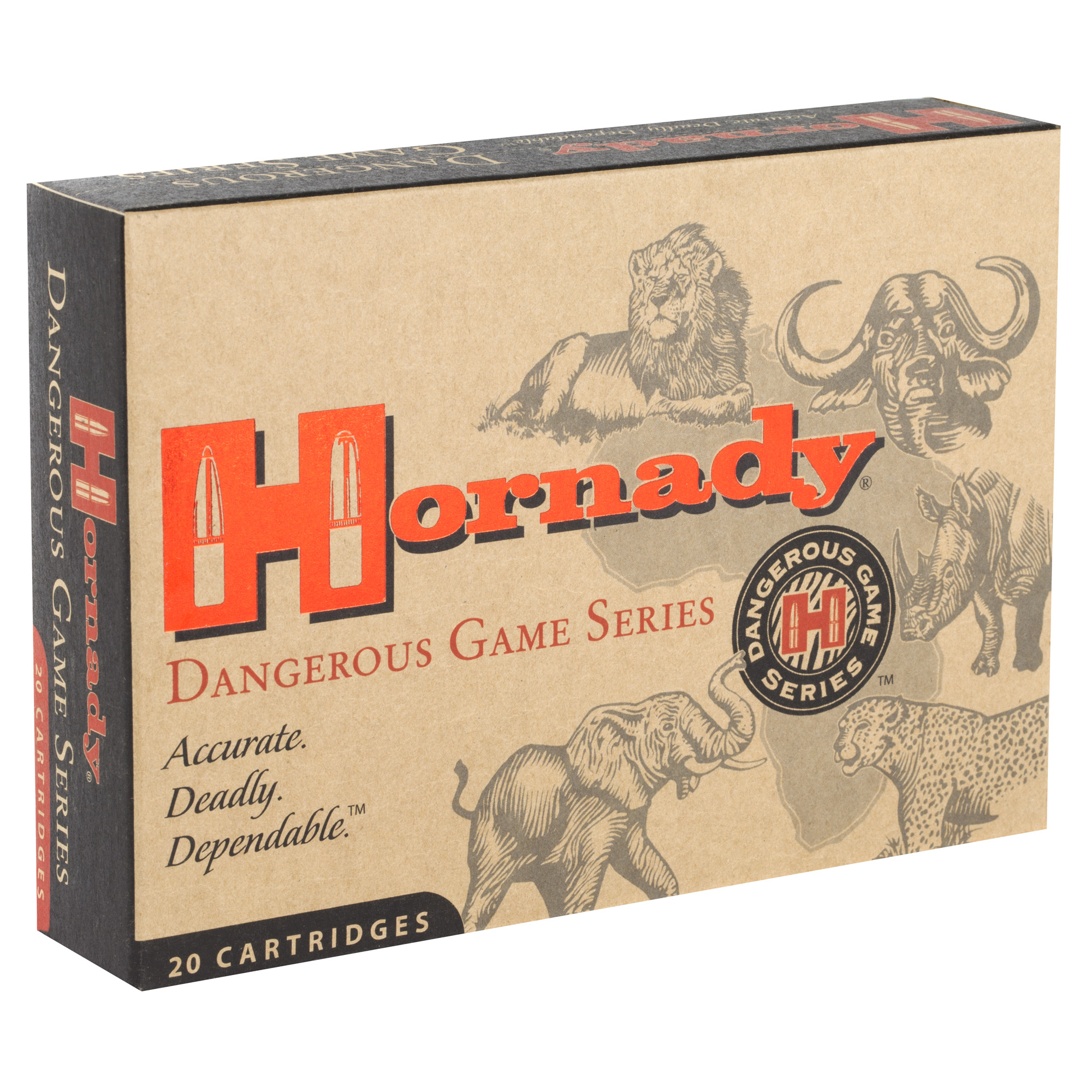 Hornady’s Dangerous Game Series offers premium ammunition designed for the most demanding safari hunts. The 375 H&H caliber with 300-grain DGX Bonded bullets provides exceptional penetration and reliable performance against large game. Manufactured with high-quality components under strict quality control, this ammunition ensures consistent ballistics and durability in the field. The DGX Bonded design features a bonded core and jacket, delivering deep penetration and controlled expansion for ethical kills and maximum reliability in tough conditions. Ideal for seasoned hunters targeting dangerous game species, this ammunition is trusted by professionals worldwide.