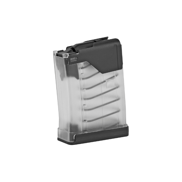 The Lancer L5AWM 10-Round Magazine Translucent Clear is a compliant AR‑15 magazine featuring a translucent polymer body, steel-reinforced feed lips, and anti-tilt follower—designed for reliability and visual round verification.