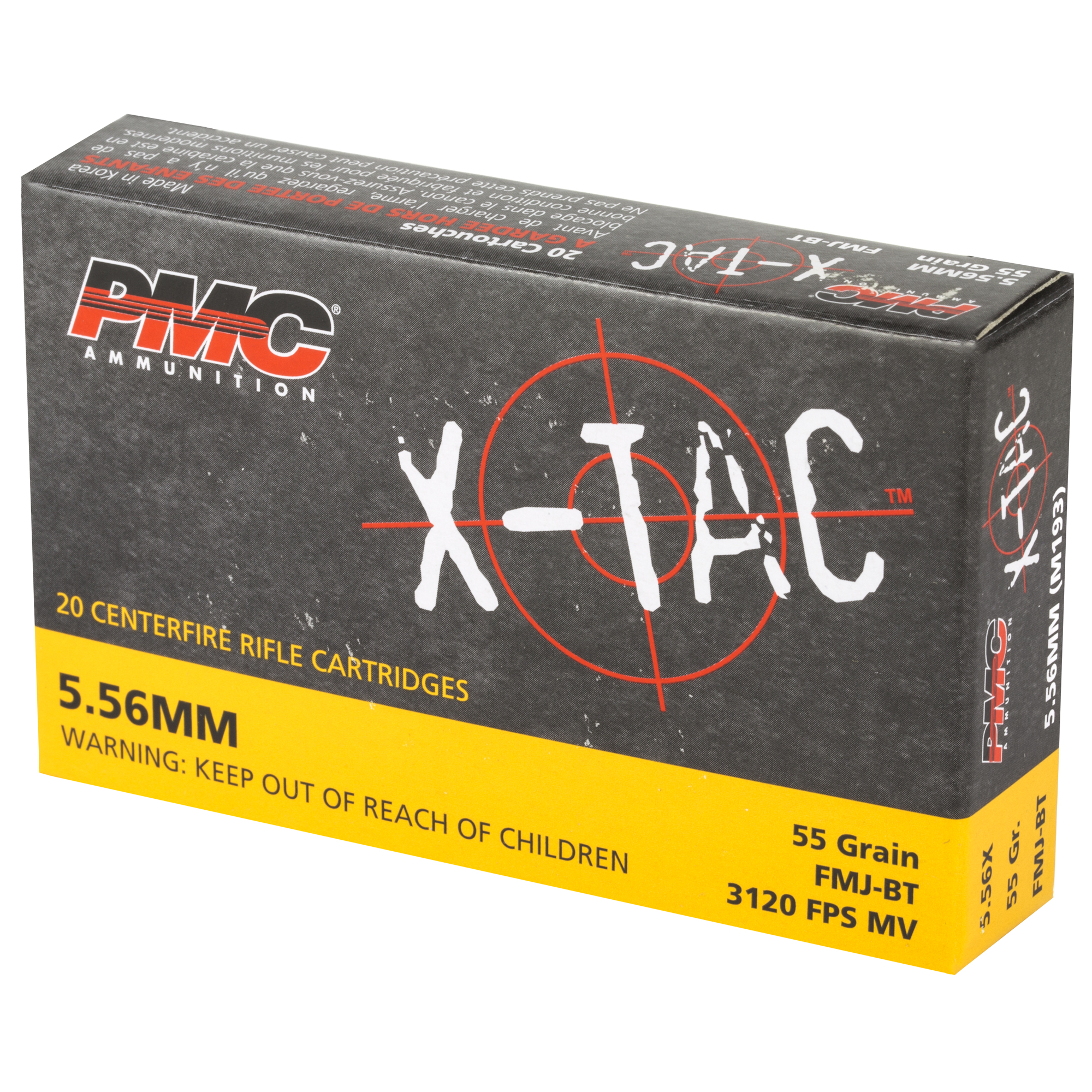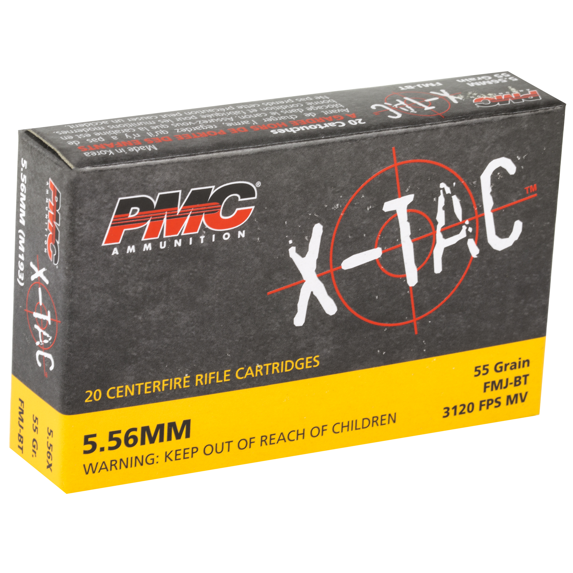 ATTRIBUTES: 556NATO, 55Gr, PMC Ammunition, XTAC, Full Metal Jacket Boat Tail, 20, 1000