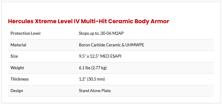 The Hercules Level 4 Xtreme ceramic plates meet the stringent requirements for NIJ Level IV ballistic protection, the highest rating available under the National Institute of Justice (NIJ) 0101.06 standard.