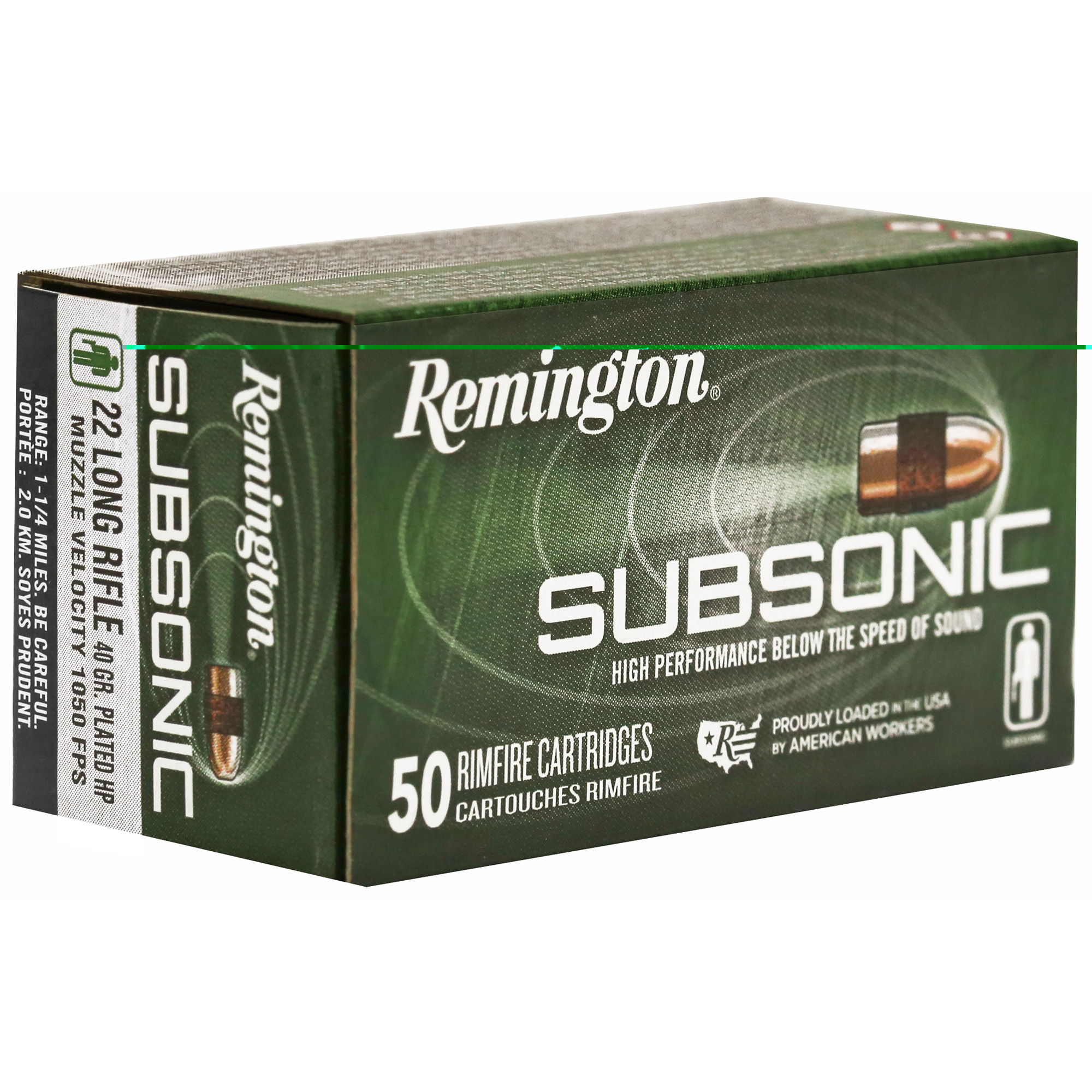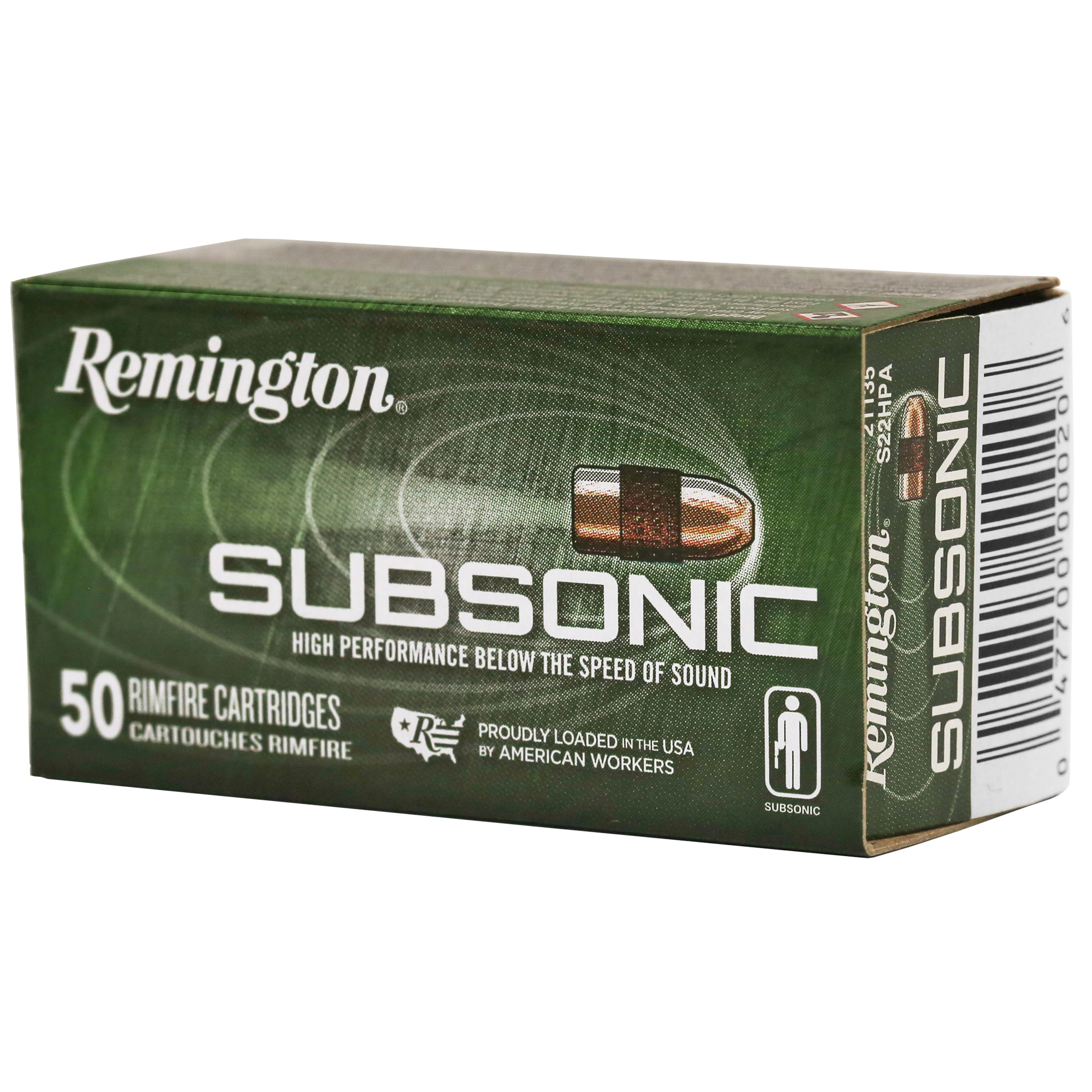 Subsonic delivers superior stealth and consistency below the sound barrier. Its tack-driving rimfire performance was developed through a joint effort of Remington and AAC team experts, manufactured with tight velocity control to eliminate supersonic cracks. Driving a copper-plated, hollow- point bullet optimized for reduced lead buildup in silencer ports and maximum effectiveness at lower velocity.