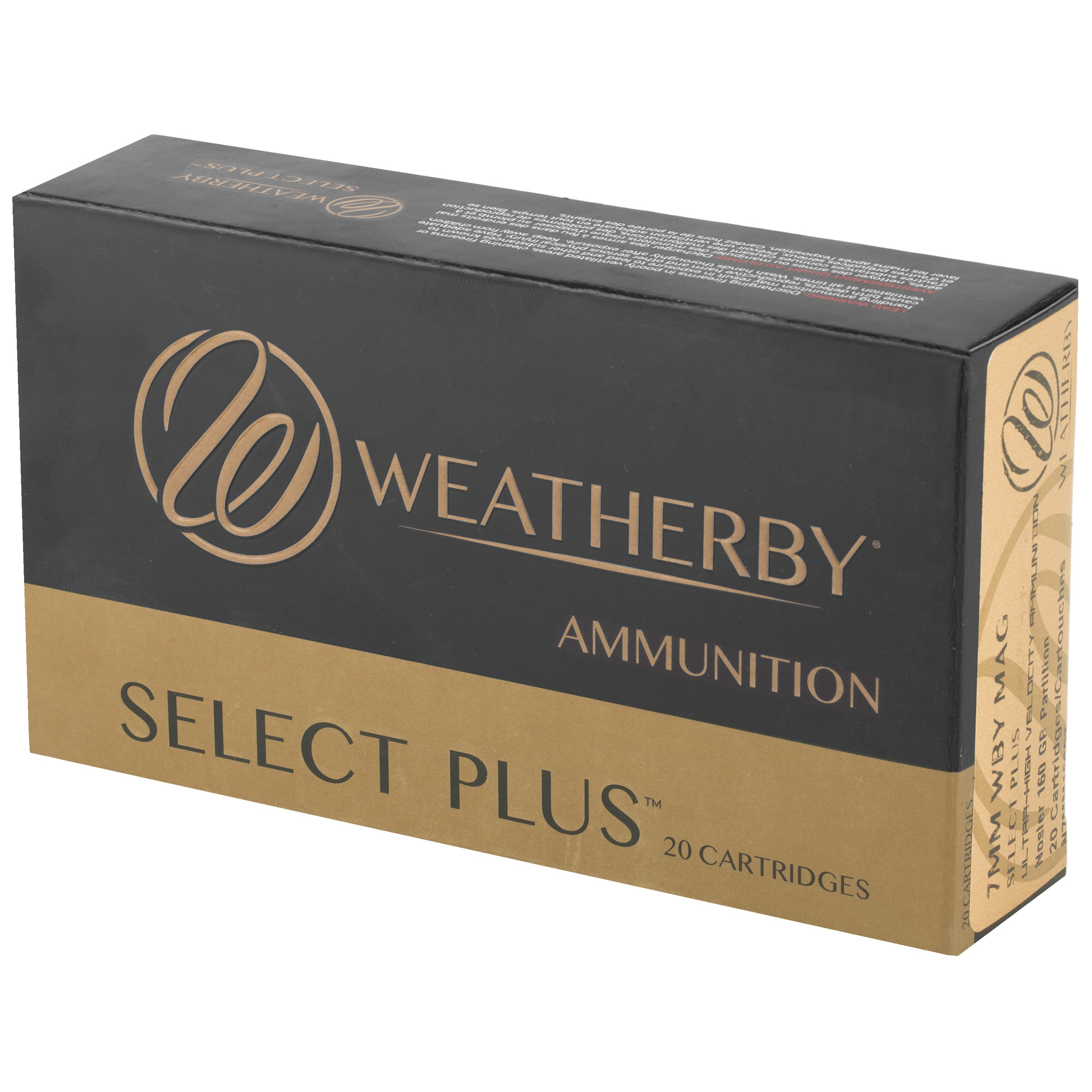 ATTRIBUTES: 7MM Weatherby Magnum, 160Gr, Weatherby, Select Plus, Partition, 20, 200