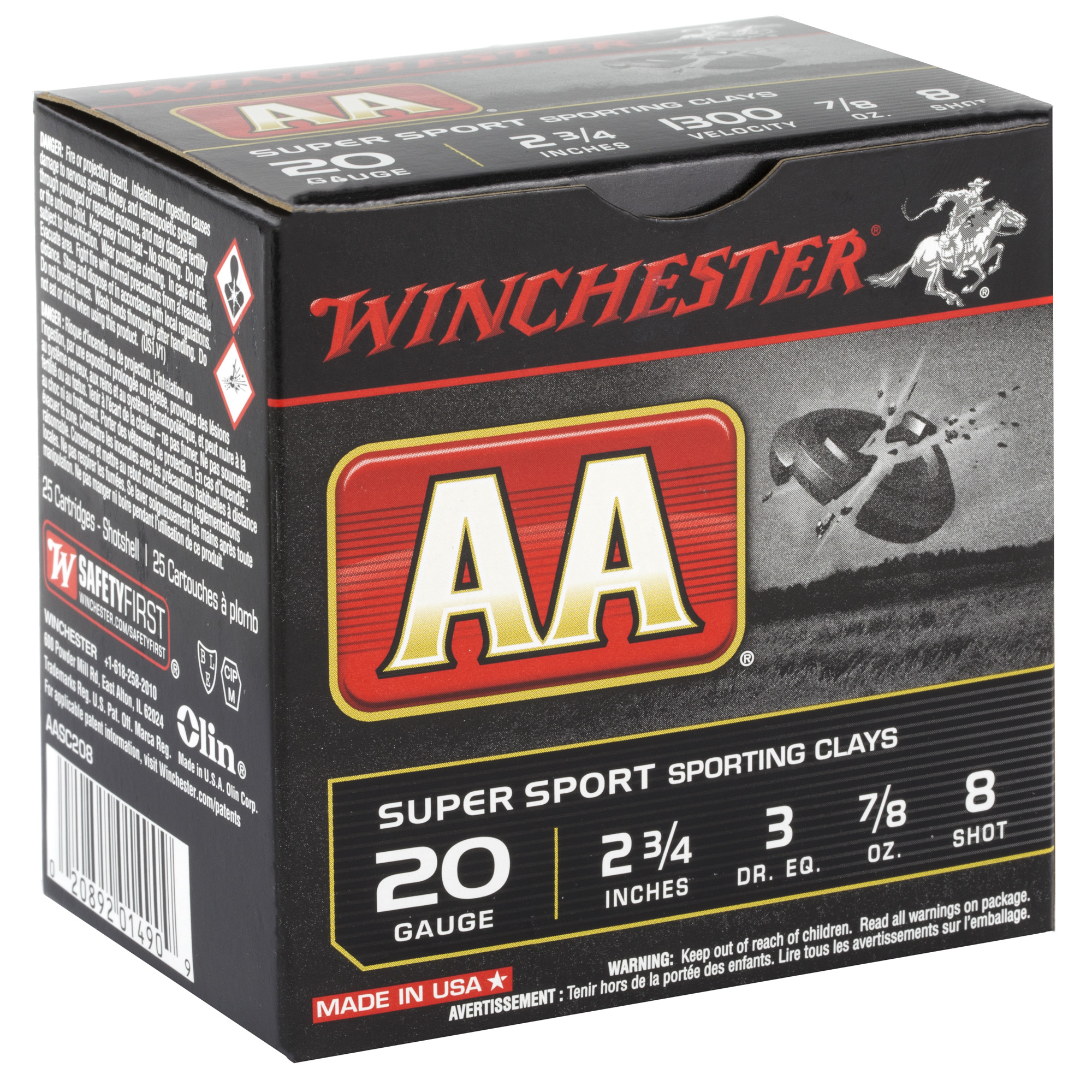 ATTRIBUTES: 20 Gauge 2.75, #8, Winchester Ammunition, AA Supersport Sporting Clay, .875 oz, Shotshell, 25, 250