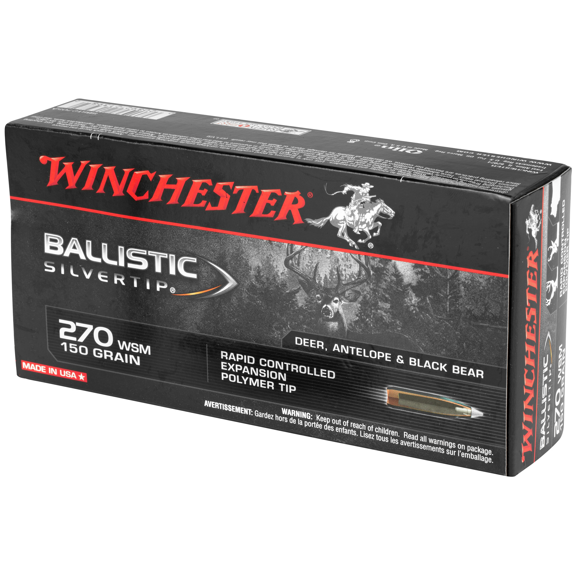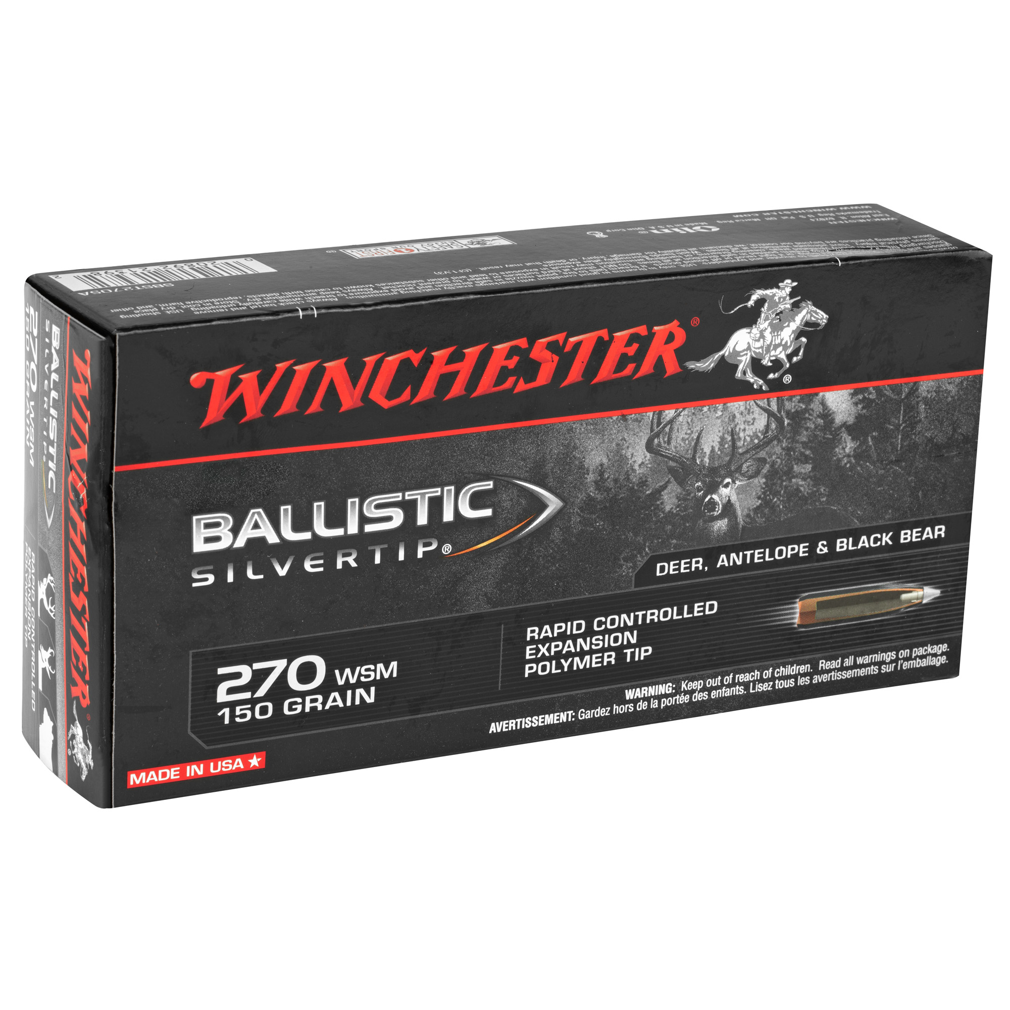 ATTRIBUTES: 270 Winchester Short Magnum, 150Gr, Winchester Ammunition, Ballistic Silvertip, Polymer Tip, 20, 200