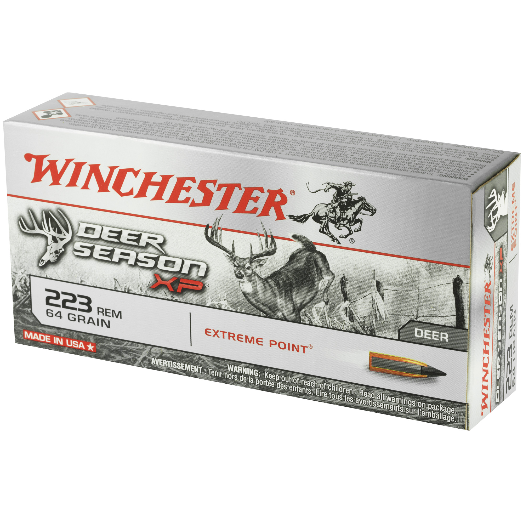 ATTRIBUTES: 223 Remington, 64Gr, Winchester Ammunition, Deer Season XP, Polymer Tip, 20, 200