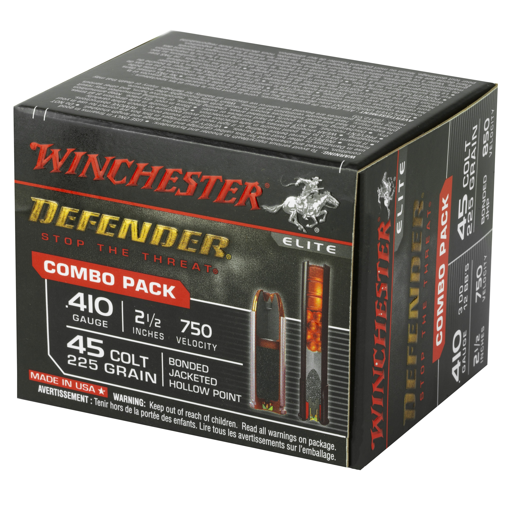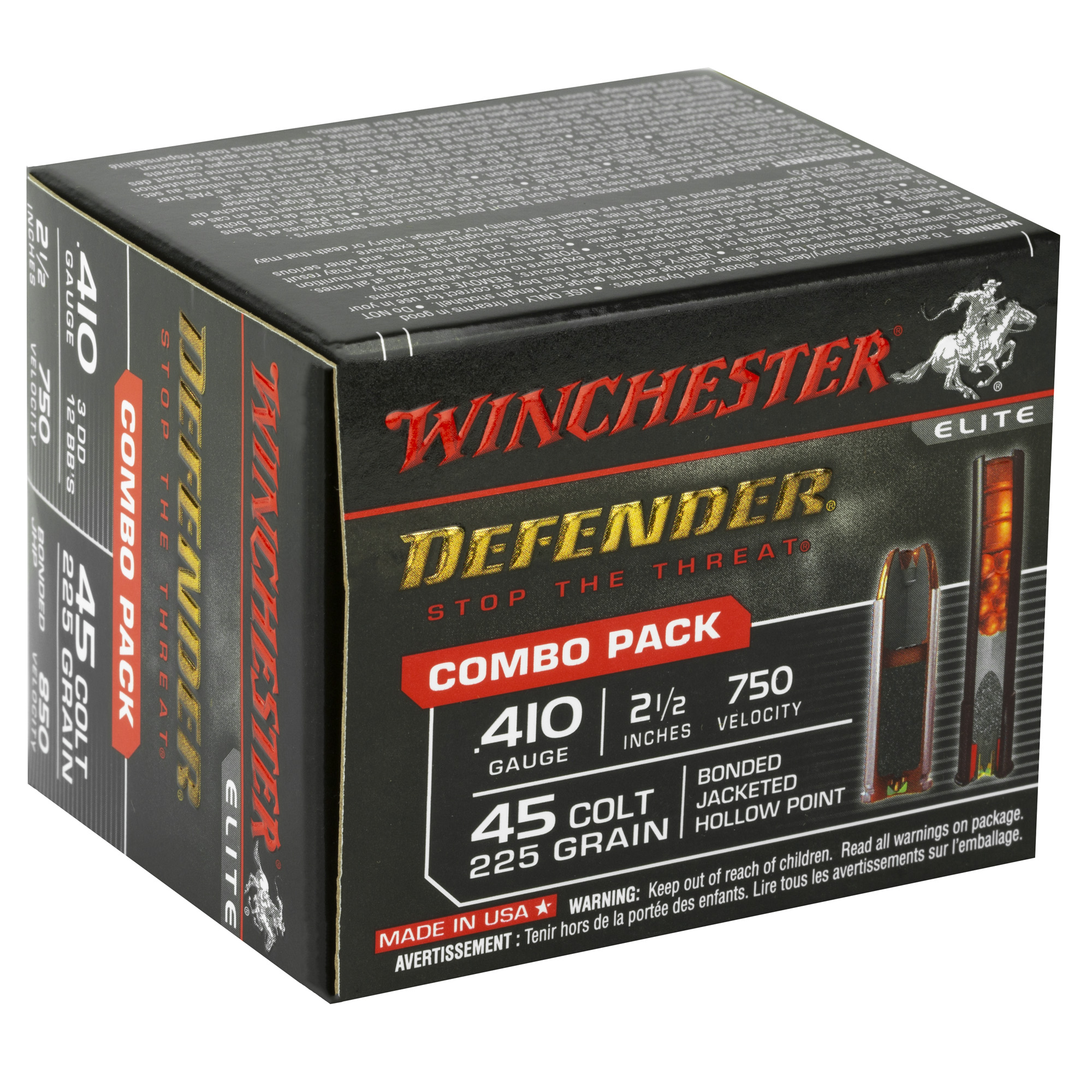 ATTRIBUTES: 410 Bore 2.5, 225Gr, Winchester Ammunition, PDX1 Defender, Buck Shot/Hollow Point, 20, 200