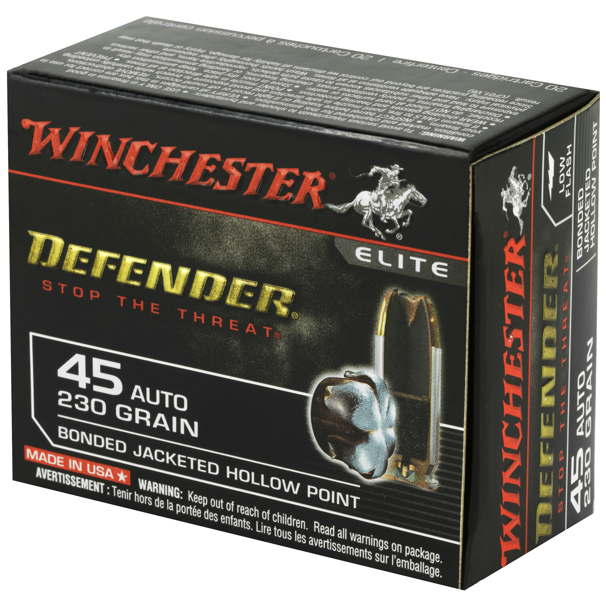 ATTRIBUTES: 45 ACP, 230Gr, Winchester Ammunition, PDX1 Defender, Hollow Point, 20, 200