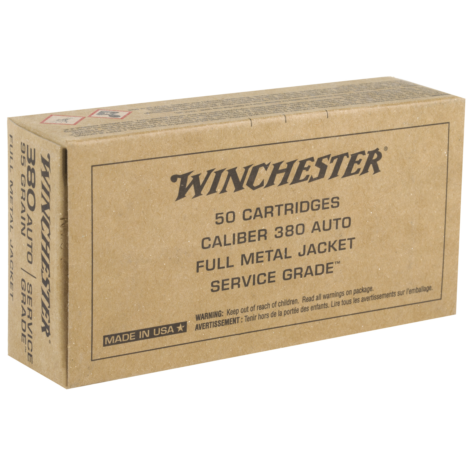 Winchester Ammunition – Winchester Ammunition Service Grade .380 ACP 95 Grain Full Metal Jacket (Box of 50)