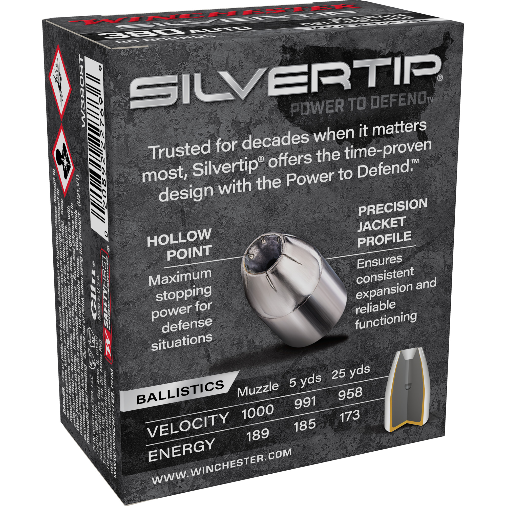 Winchester Ammunition – Winchester Ammunition SilverTip Hollow Point .380 ACP 85 Grain – 20 Rounds per Box, 200 per Case