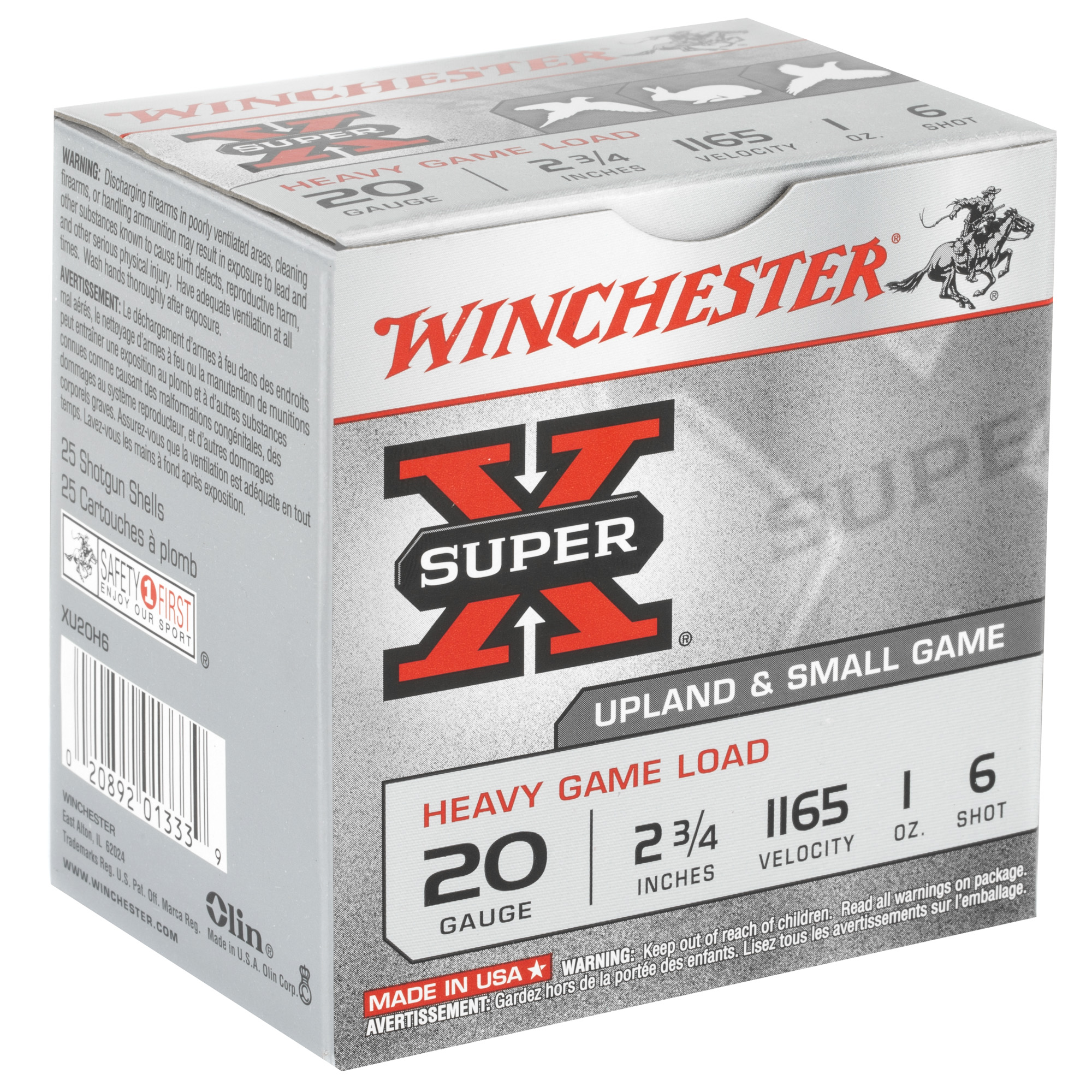 ATTRIBUTES: 20 Gauge 2.75, #6, Winchester Ammunition, Super-X, 1 oz, Shotshell, 25, 250