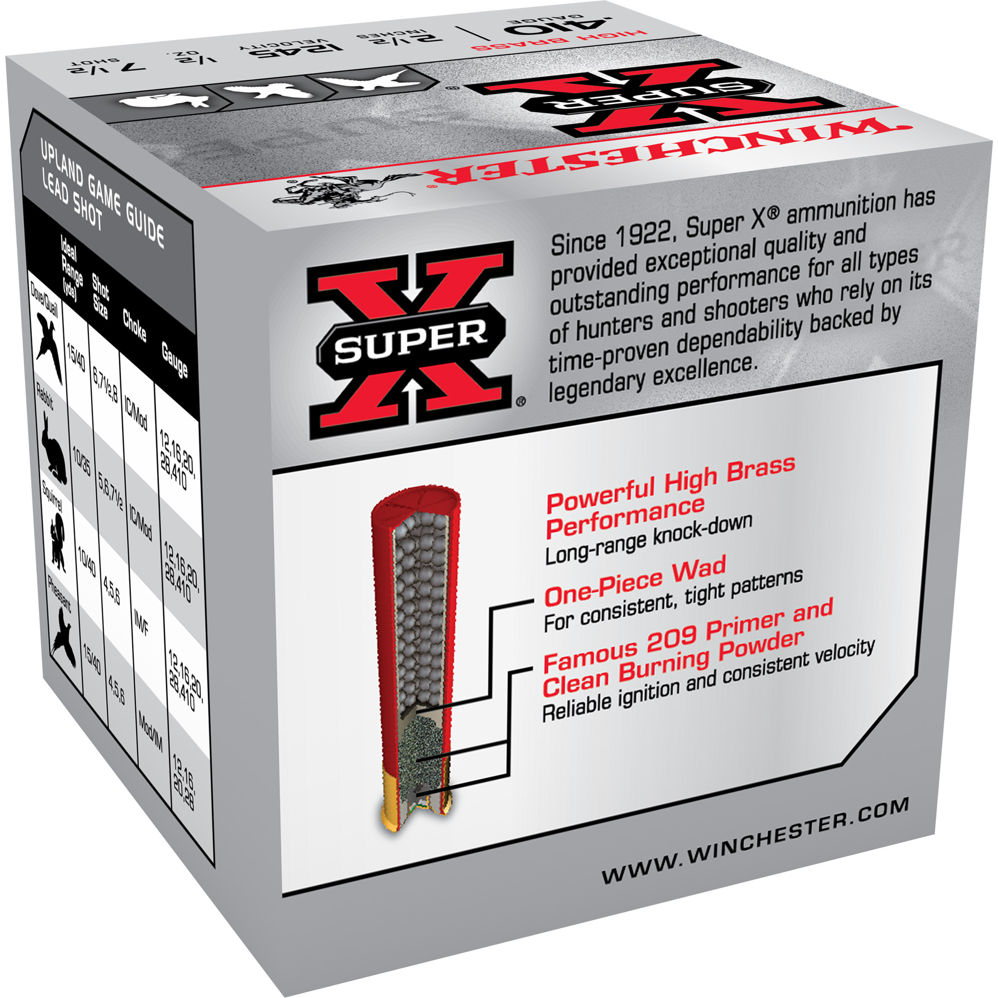 ATTRIBUTES: 410 Bore 2.5, #7.5, Winchester Ammunition, Super-X, 1.5 oz, Shotshell, 25, 250