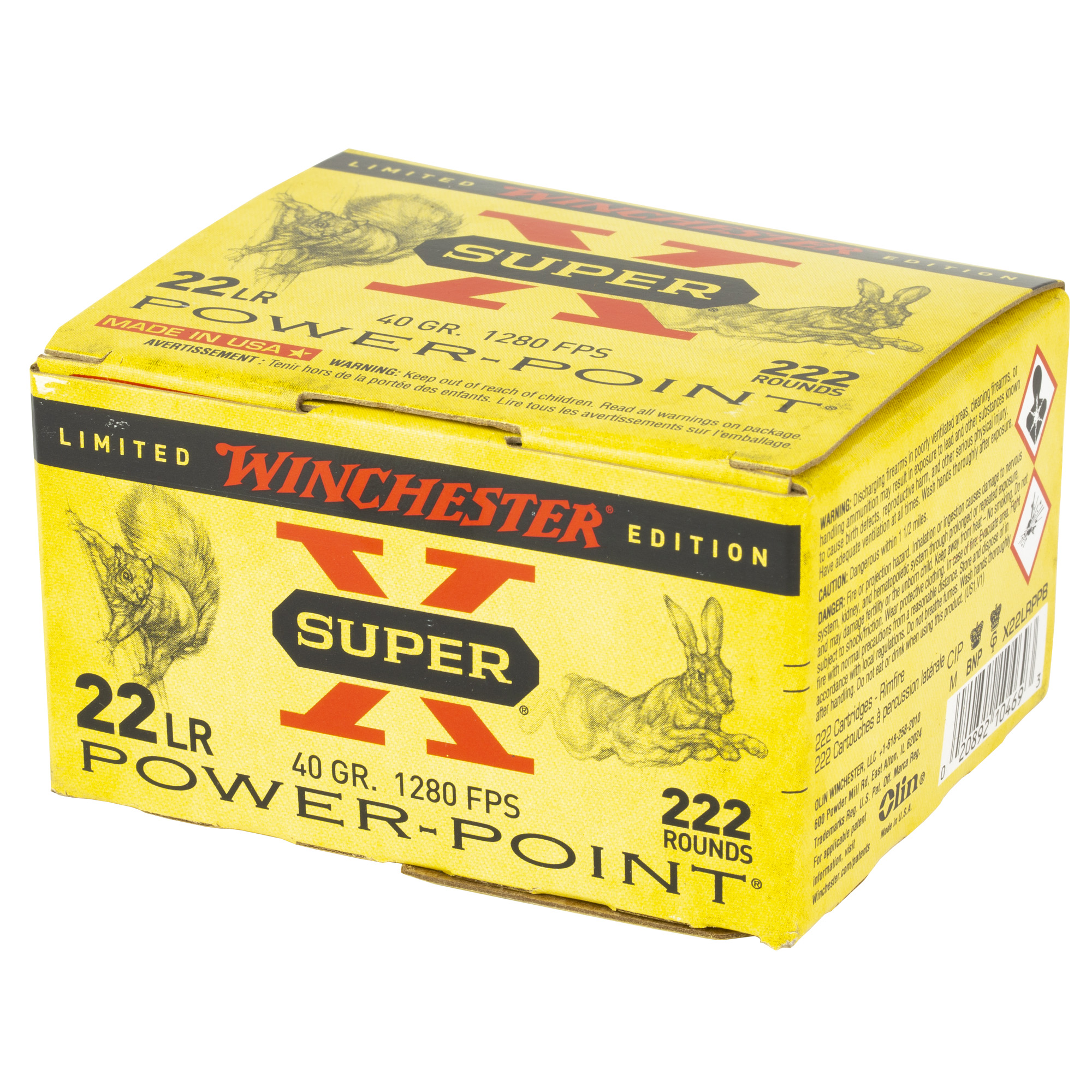 ATTRIBUTES: 22 LR, 40Gr, Winchester Ammunition, Super-X, Power Point, 222, 2220