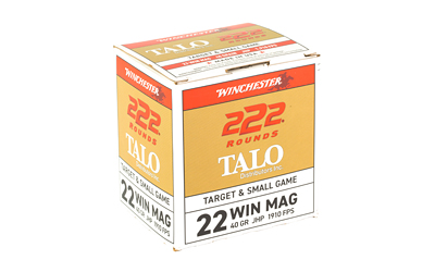 ATTRIBUTES: 22 WMR, 40Gr, Winchester Ammunition, TALO, Hollow Point, 222, 2220