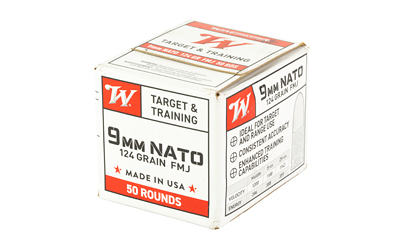 Winchester Ammunition W9NATO50 9mm NATO 124 Grain Full Metal Jacket Ammo – 50 Rounds per Box