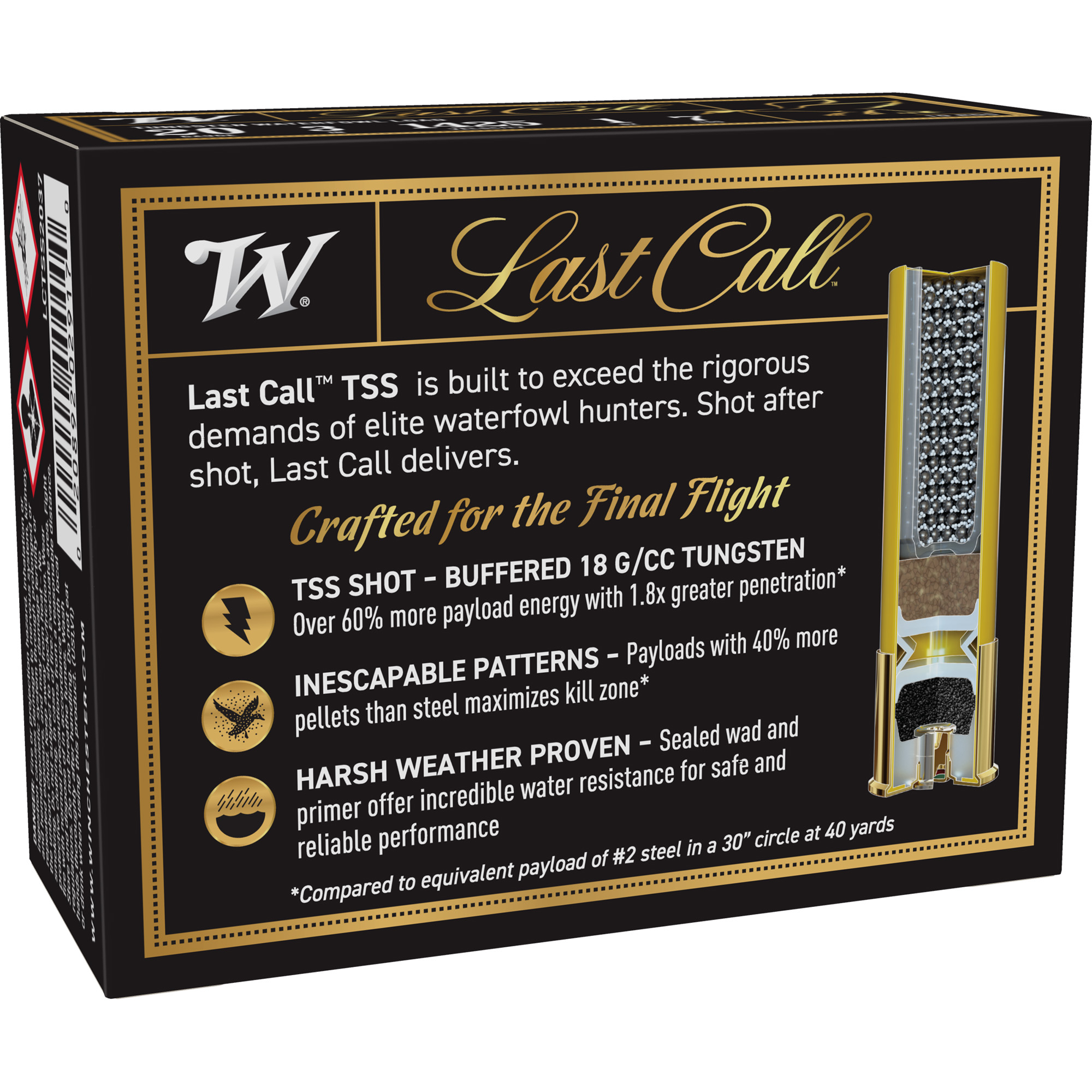 Last Call TSS ammunition is built to exceed the most rigorous demands of elite waterfowl hunters. Shot after shot. Last Call delivers.