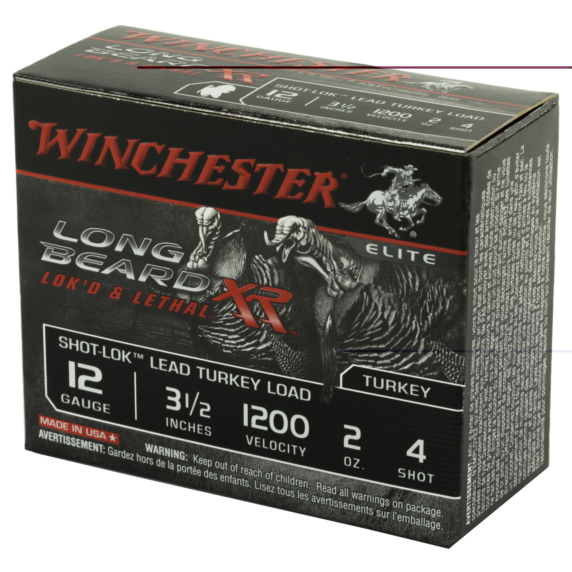 Forty yards has long been the standard by which all turkey loads were measured. No more. Its time to go farther with Winchester Longbeard XR. Featuring new-to-the-world Shot-Lok Technology. Longbeard XR offers the tightest patterns and longest shot capability of any traditional turkey load in history – with twice the pellets in a 10″ circle out to 60 yards. Longbeard XR has the knockdown power of popular heavier-than-lead loads at a fraction of the cost.