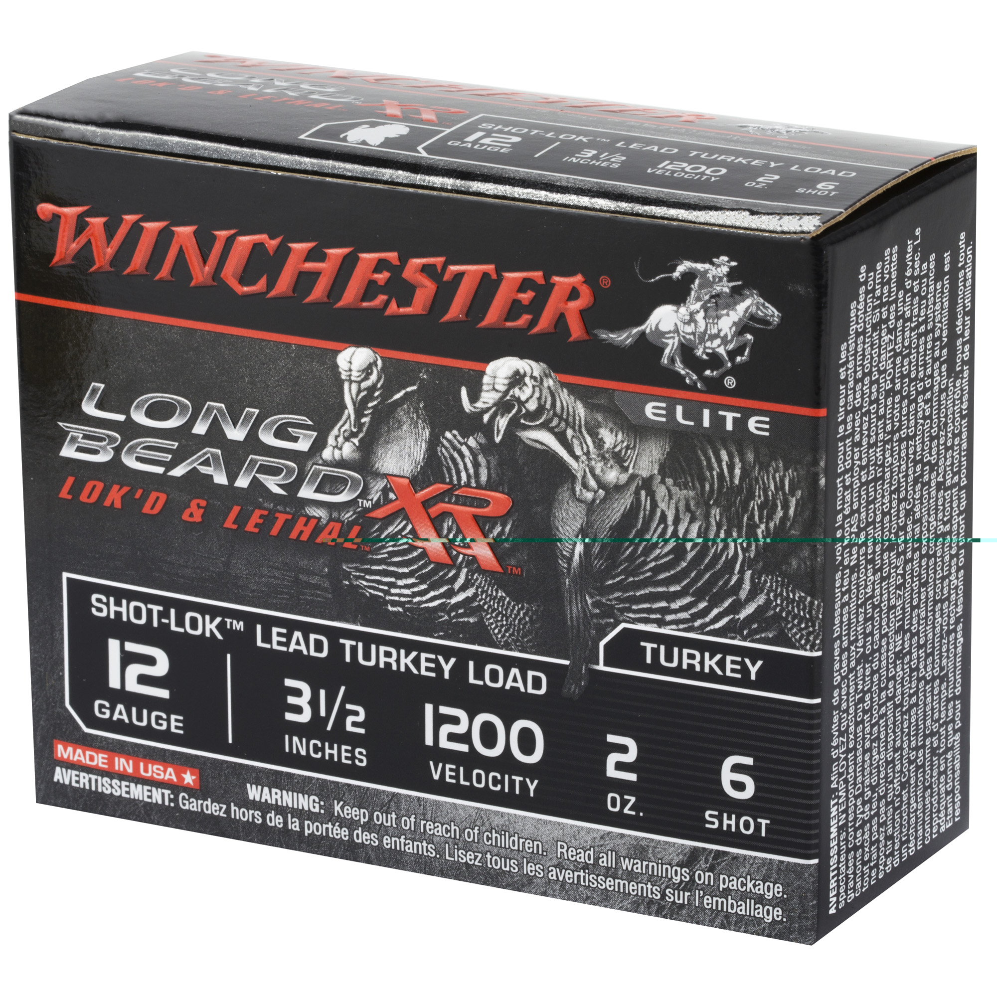 Forty yards has long been the standard by which all turkey loads were measured. No more. Its time to go farther with Winchester Longbeard XR. Featuring new-to-the-world Shot-Lok Technology. Longbeard XR offers the tightest patterns and longest shot capability of any traditional turkey load in history – with twice the pellets in a 10″ circle out to 60 yards. Longbeard XR has the knockdown power of popular heavier-than-lead loads at a fraction of the cost.