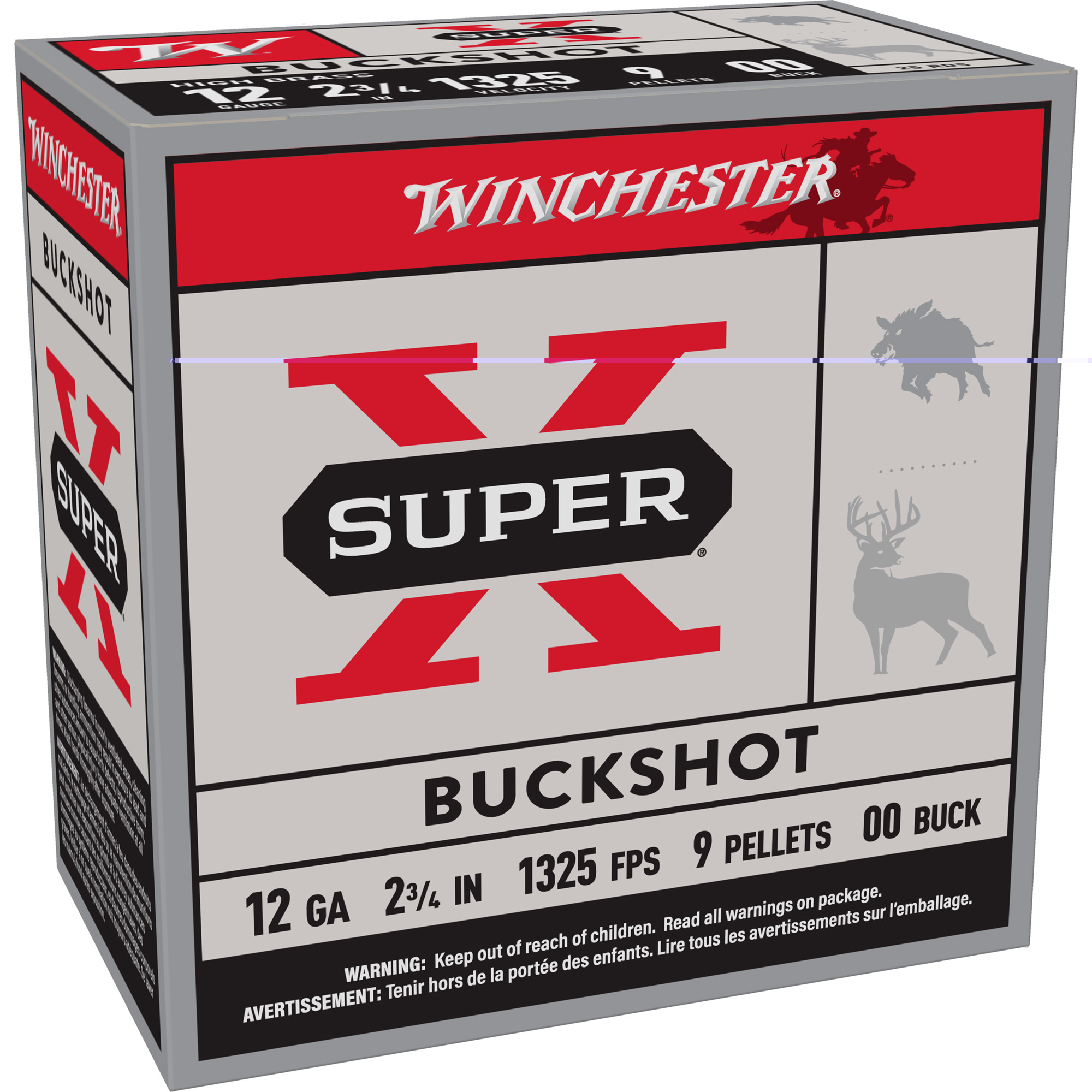 Winchester Ammunition Super-x, 12 Gauge 2.75″, 00 Buck, Buckshot, 9 Pellets, 25 Round Box Xb1200vp25